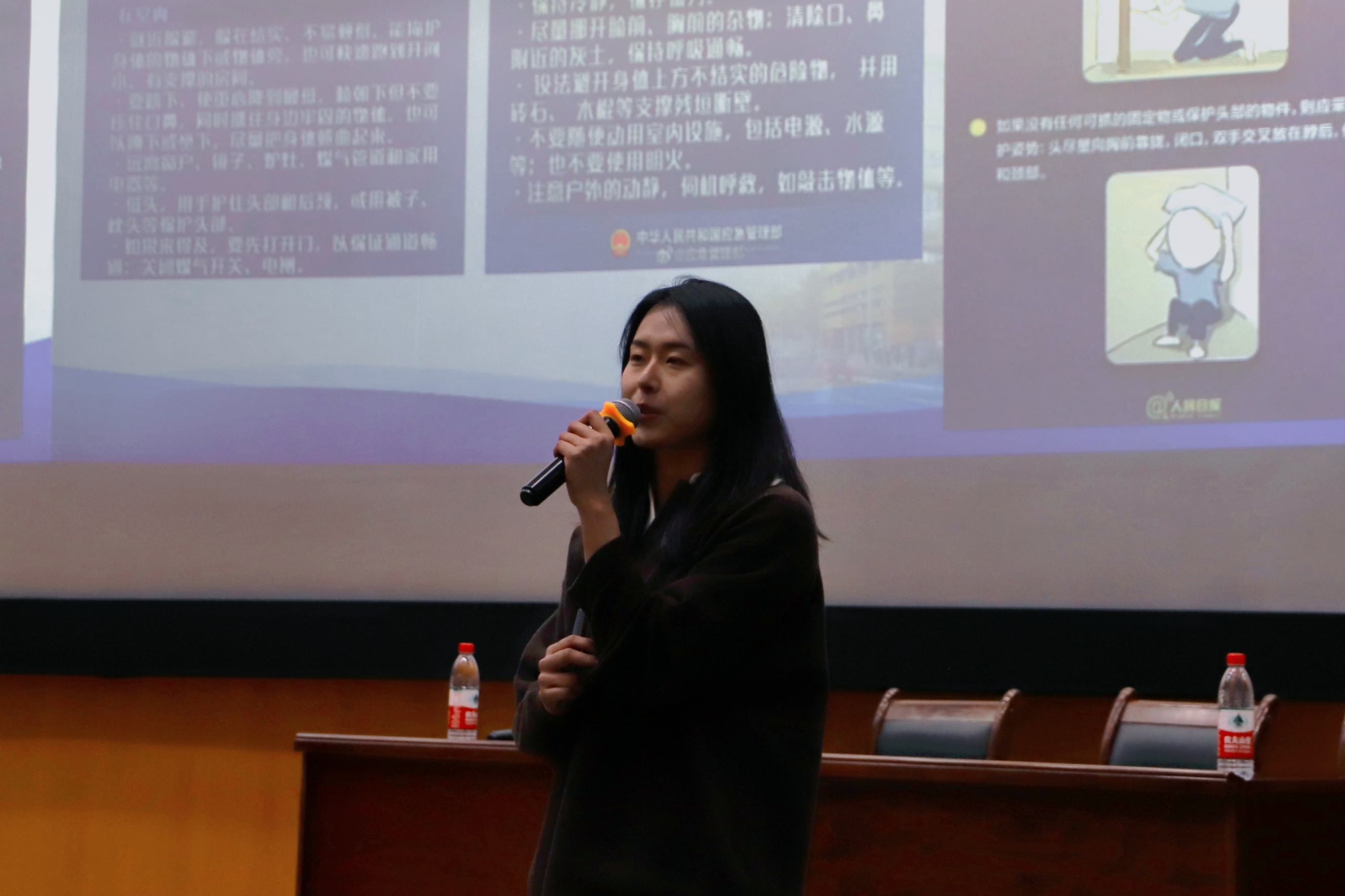 张明华介绍了学院本科生综合测评管理办法,希望同学们注重专业学习的同时,培养运动习惯,提升综合素质,全面发展。同时对学生安全教育、文明校园创建、学风建设、班风建设、生涯规划等工作进行了强调。何佳莉对本科生请销假流程进行了详细说明,提醒同学们临近元旦假期和寒假,按要求做好请销假。