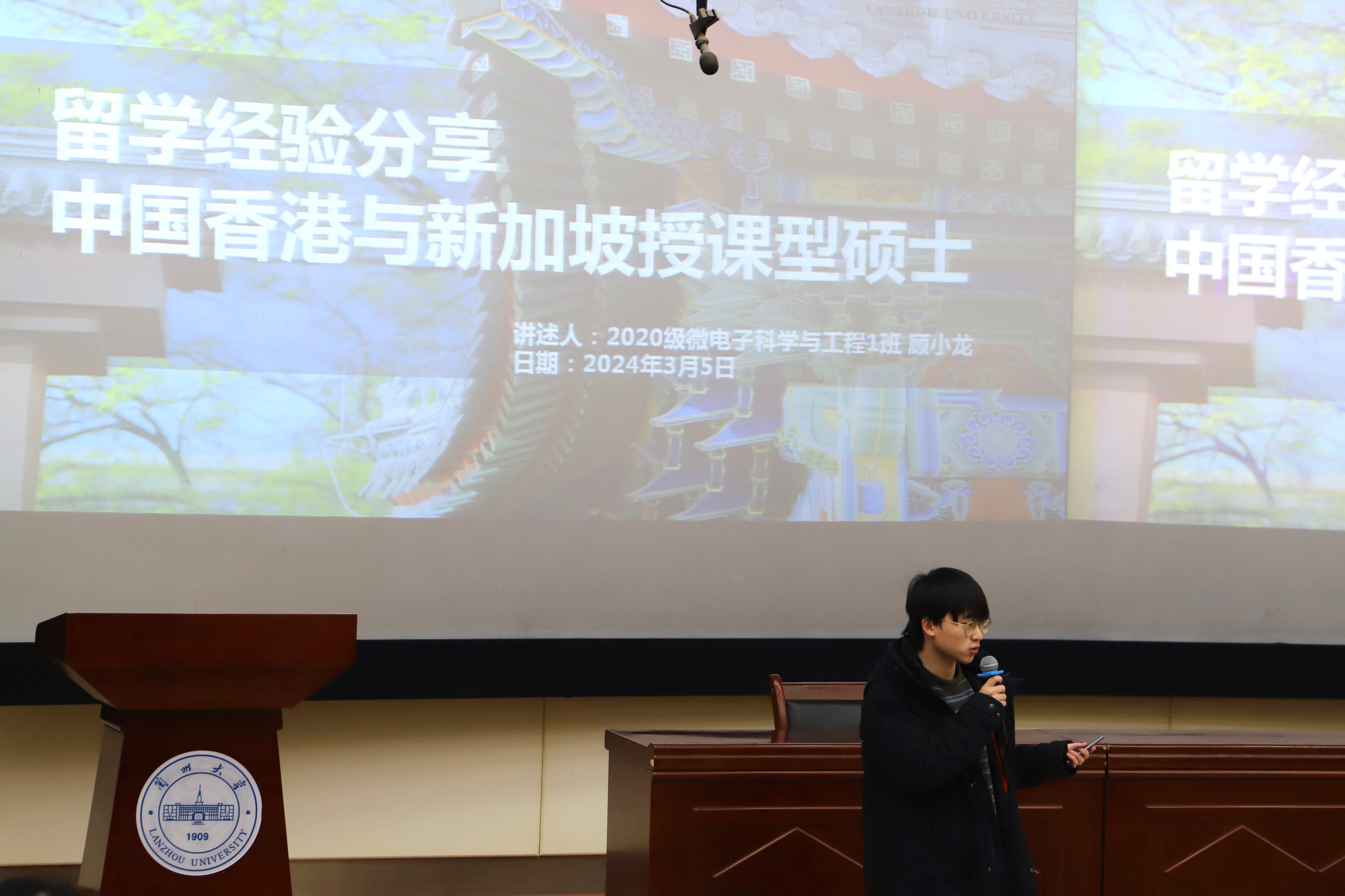 本次会议邀请2020级微电子科学与工程专业本科生顾小龙同学做留学经验分享。顾小龙从申请准备、学校优势、生活成本、总结和建议四个方面分享了留学经验,并根据自身经验向有同学们分享了大学四年中应做的准备,提醒同学们结合自身兴趣,尽早明确适合自己的未来方向。