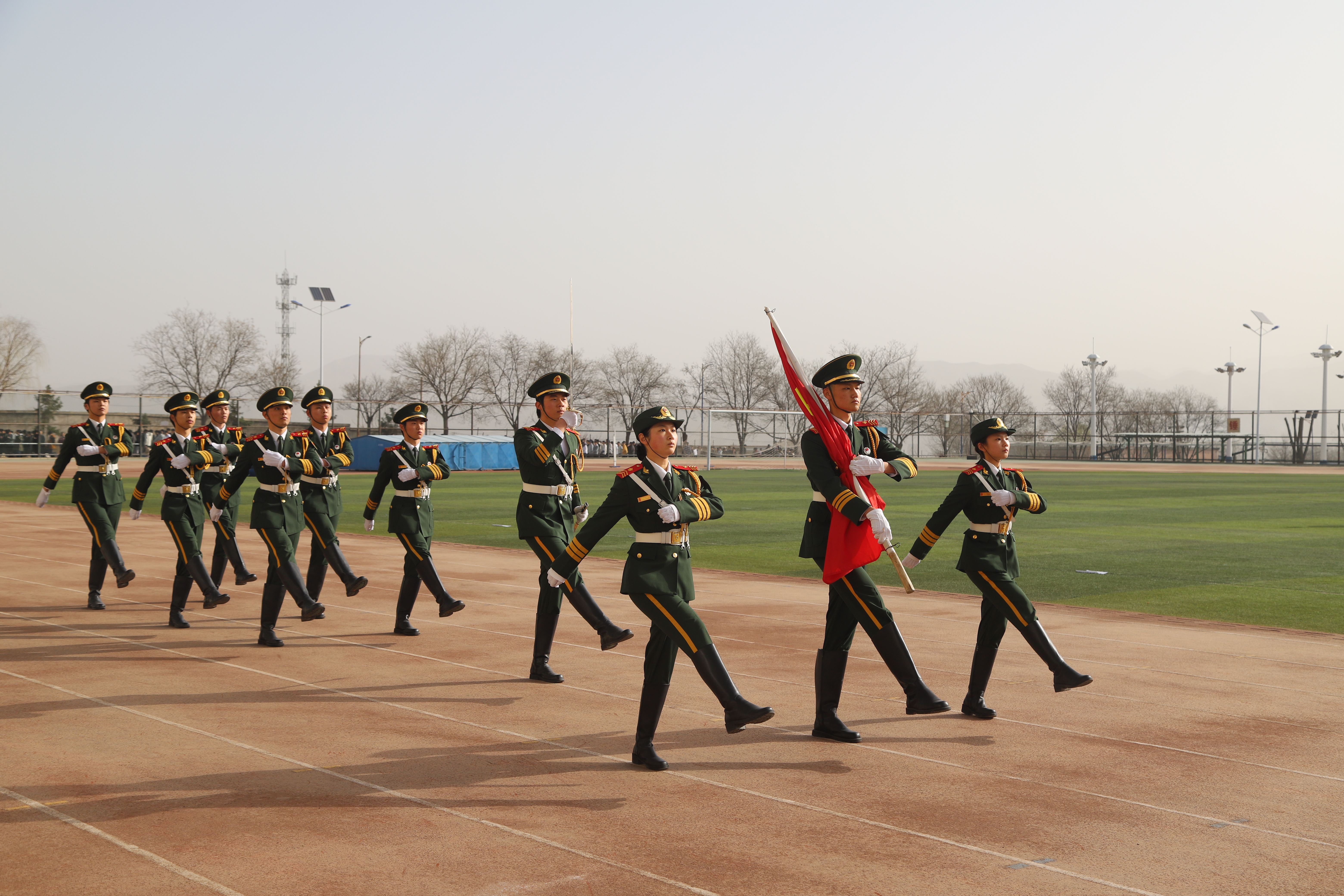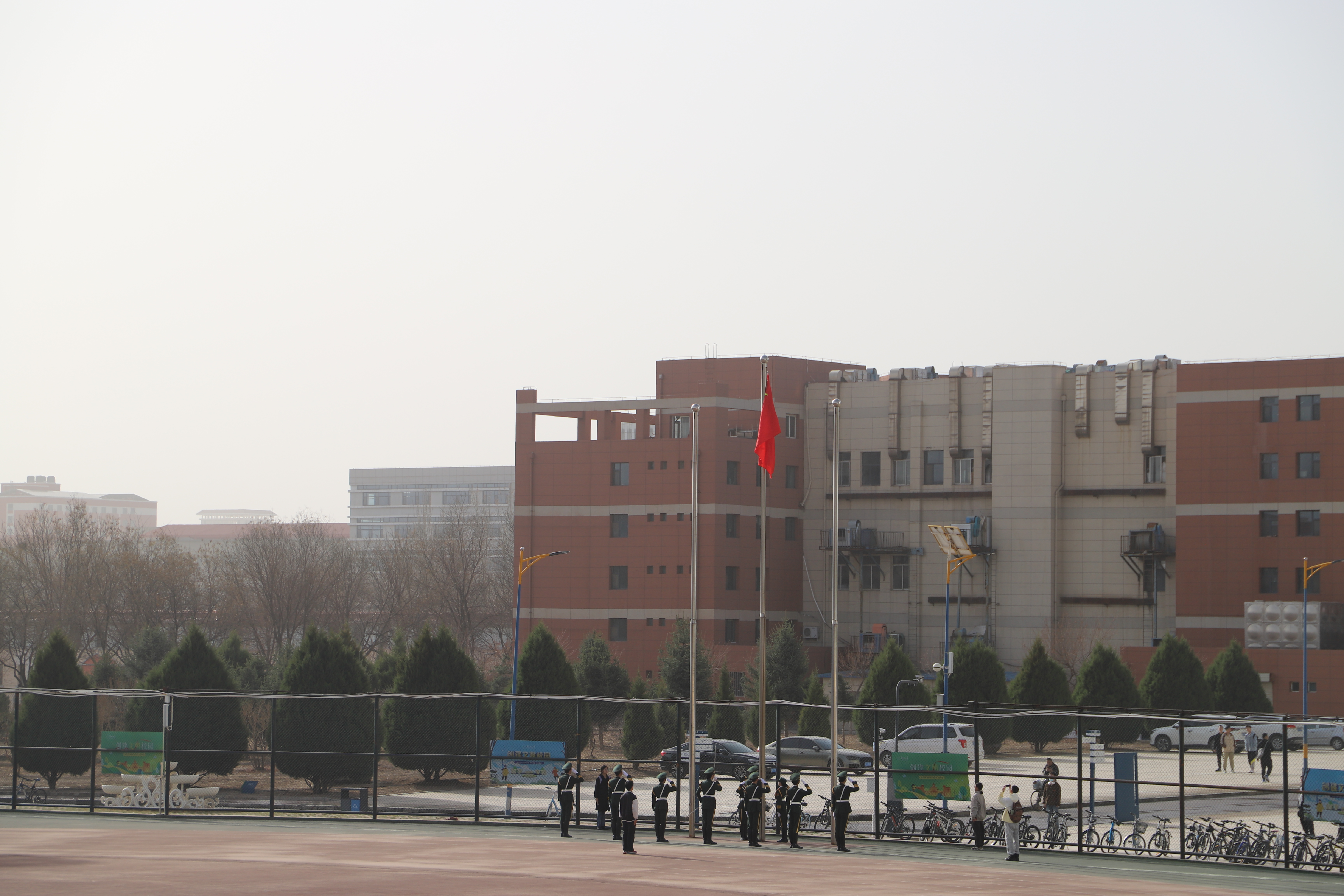 各方阵入场完毕后进行升国旗、奏国歌仪式,全体师生行注目礼,共同见证了这个庄严而隆重的时刻。