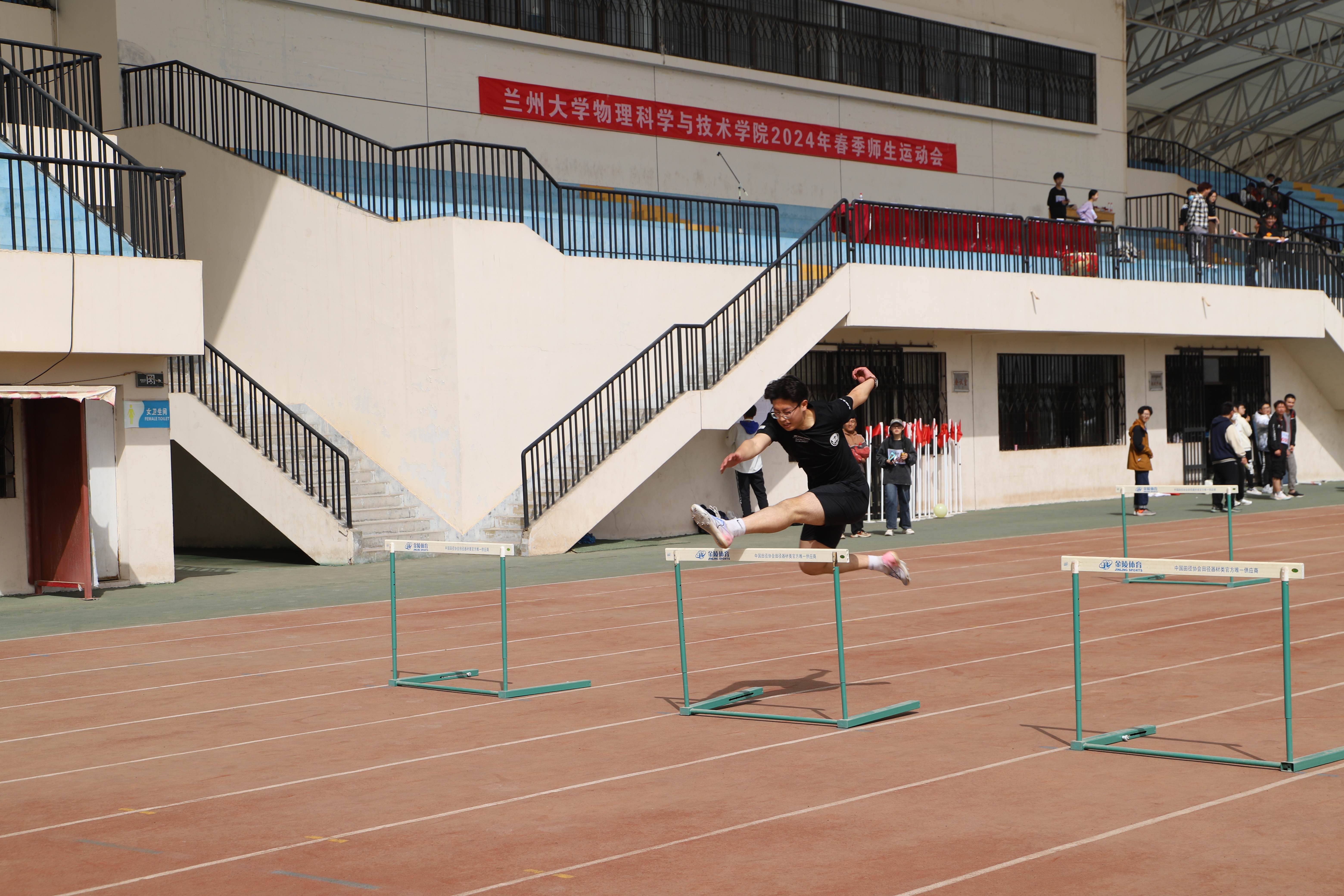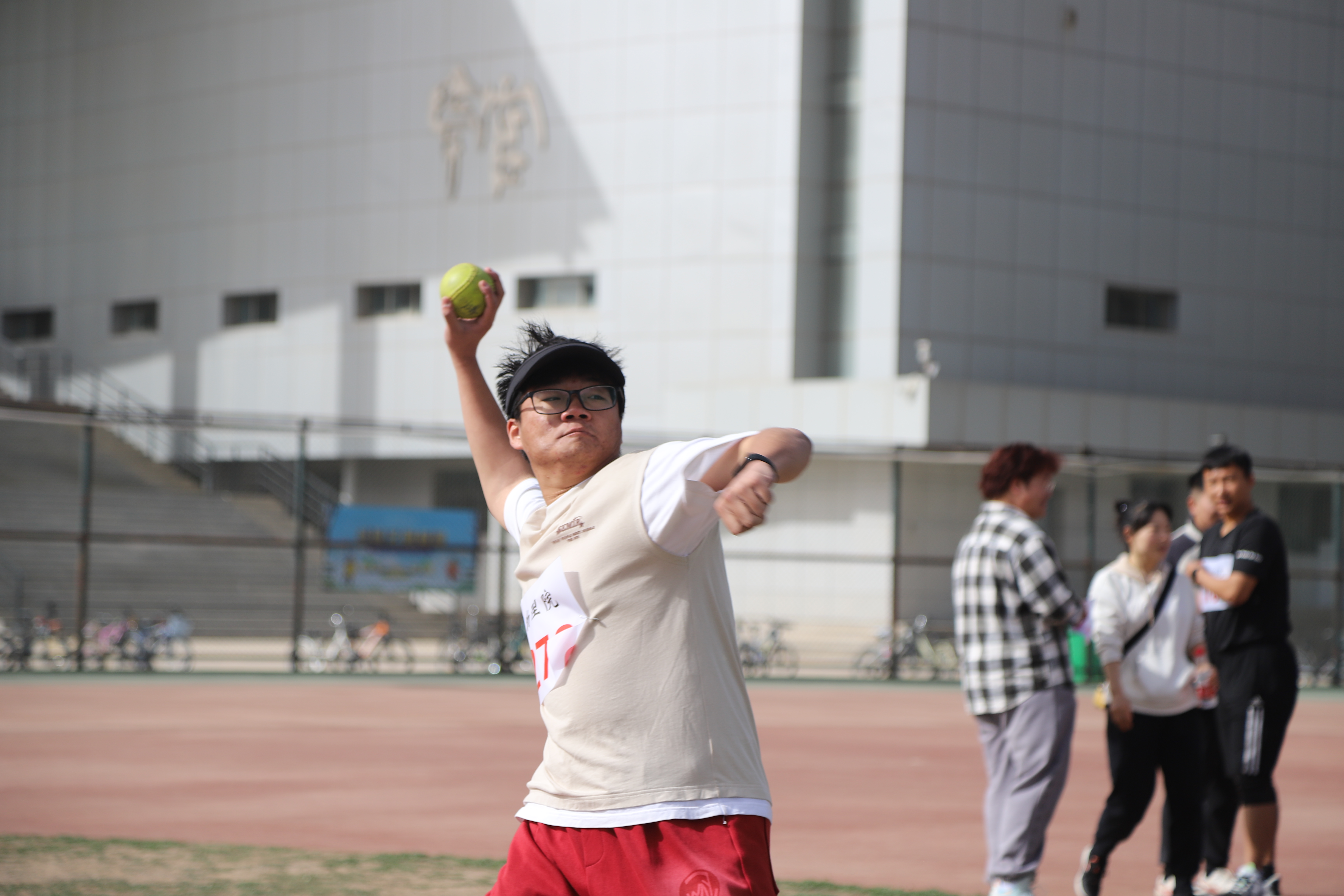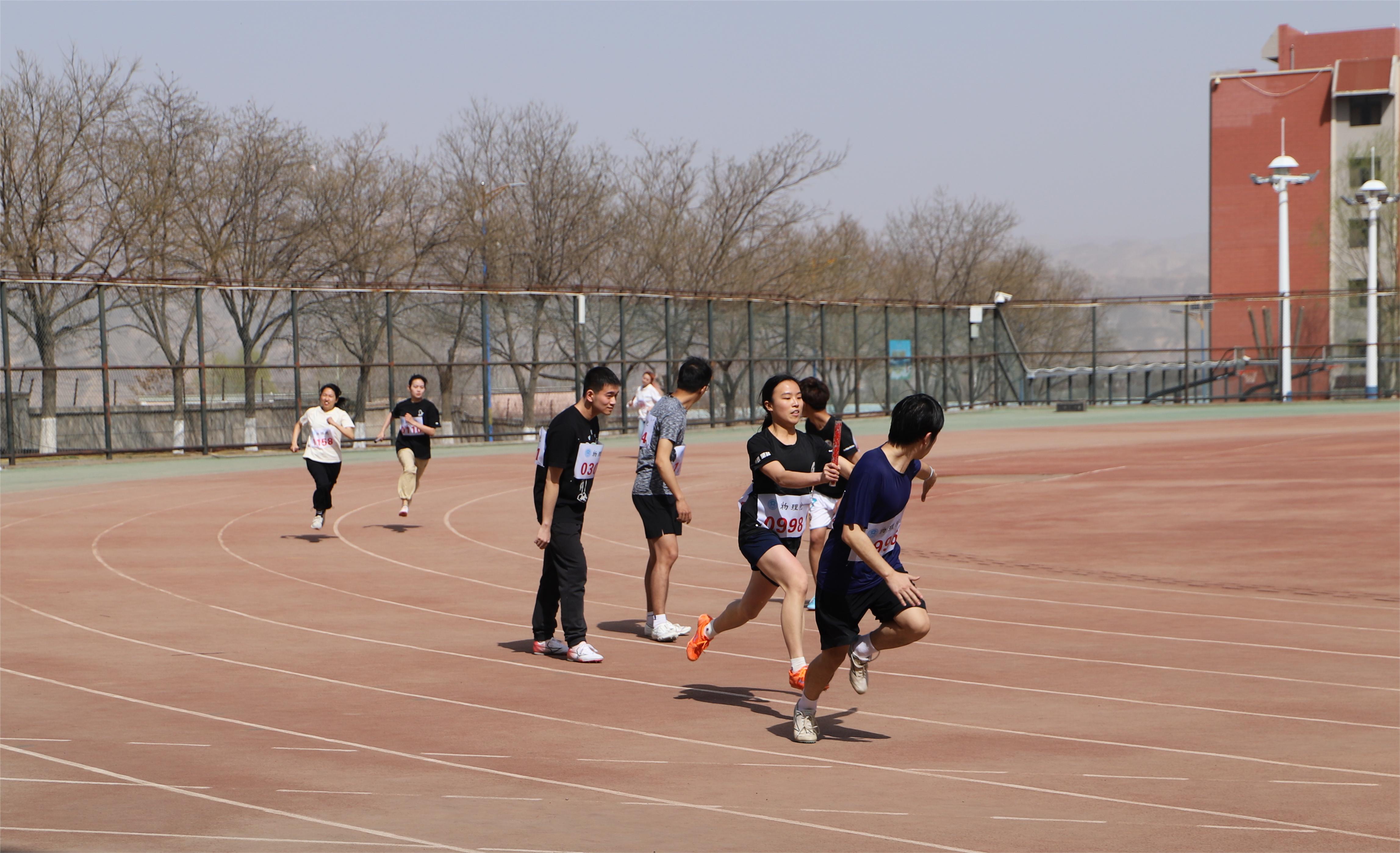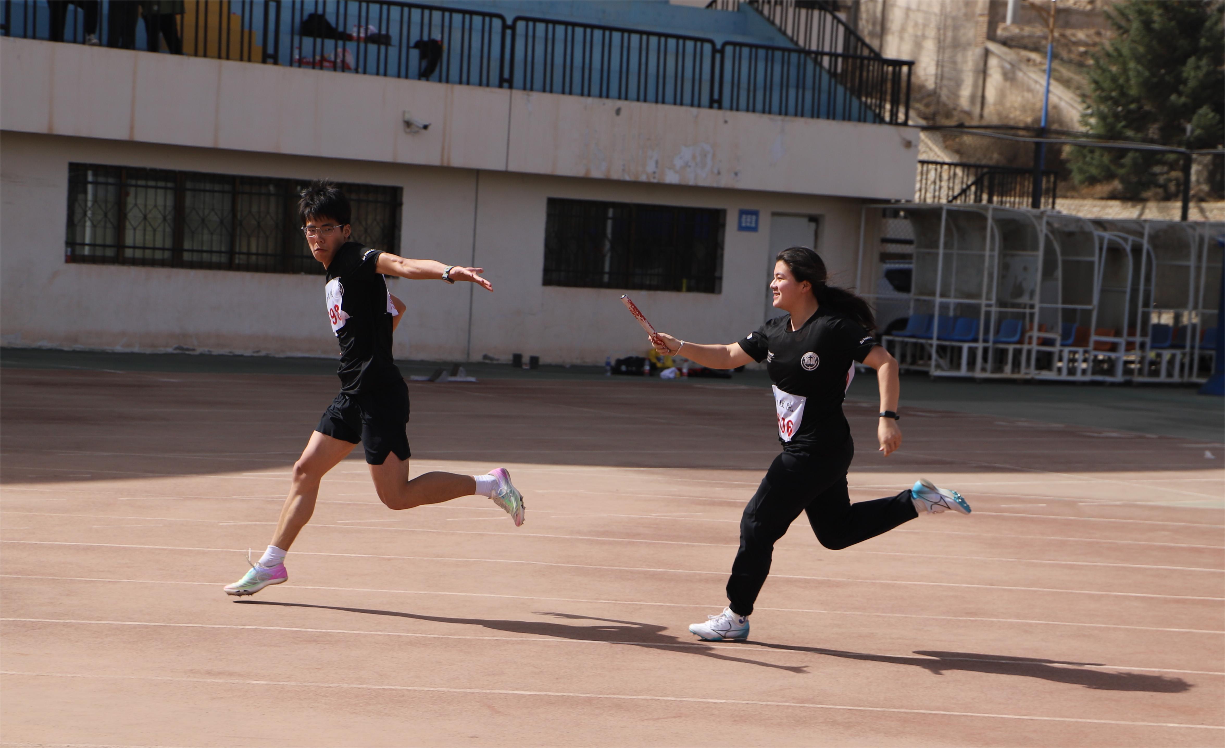 开幕式后,各项比赛正式开始,本届运动会共设置田径项目、师生趣味项目等27个竞赛项目。呼啦圈接力、拔河、旱地龙舟等师生趣味项目在为运动会增添乐趣的同时,也增进了师生交流。比赛中,参赛选手们都全力以赴,拼字当头,践行着“更快、更高、更团结”的奥林匹克格言,展现了物院学子独有的青春活力。最后进行的男女混合4×100接力赛更是将赛场的热闹氛围推向了高潮,每位运动员都为了集体荣誉全力以赴,赢得了在场观众们的阵阵喝彩。