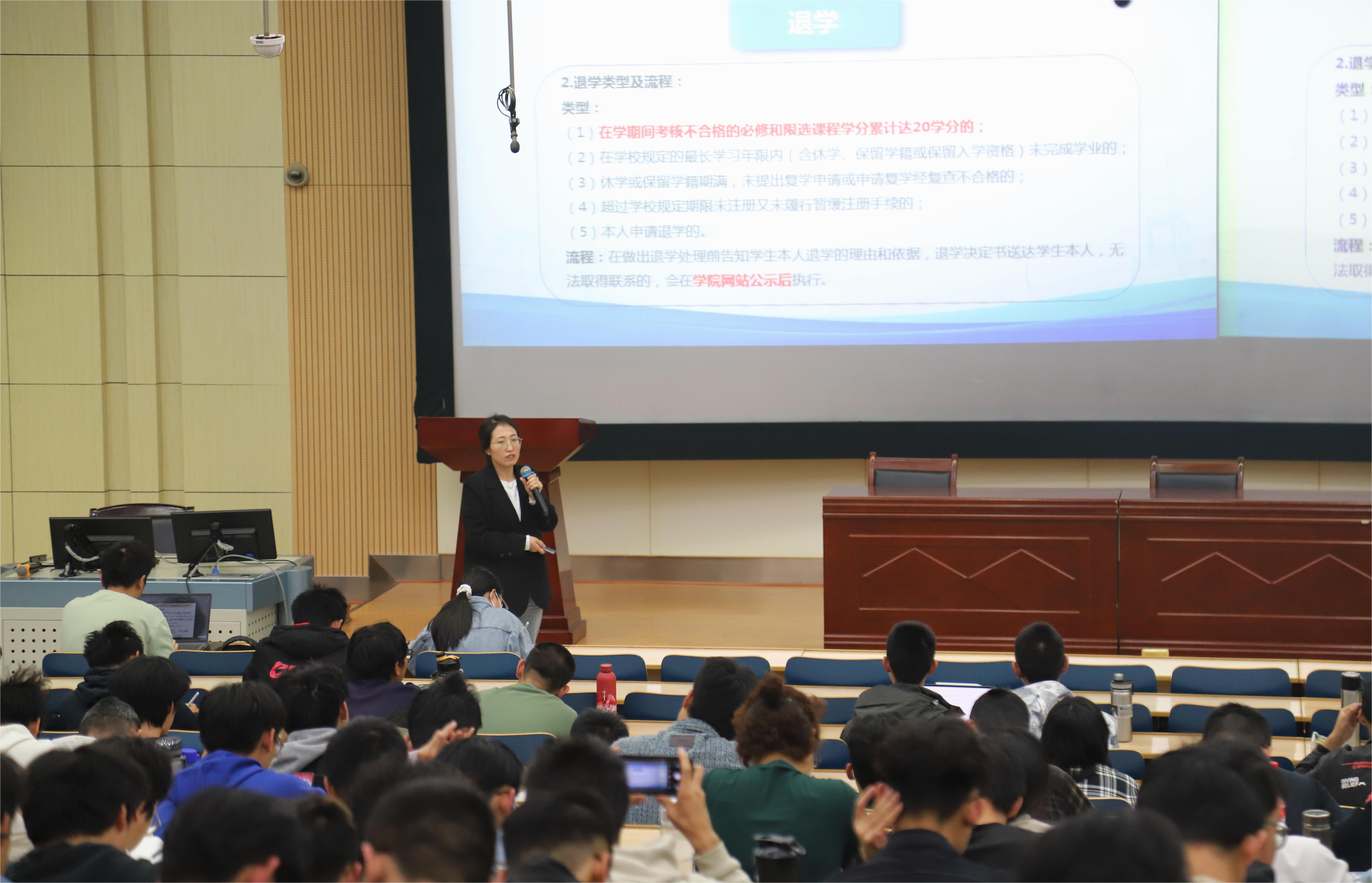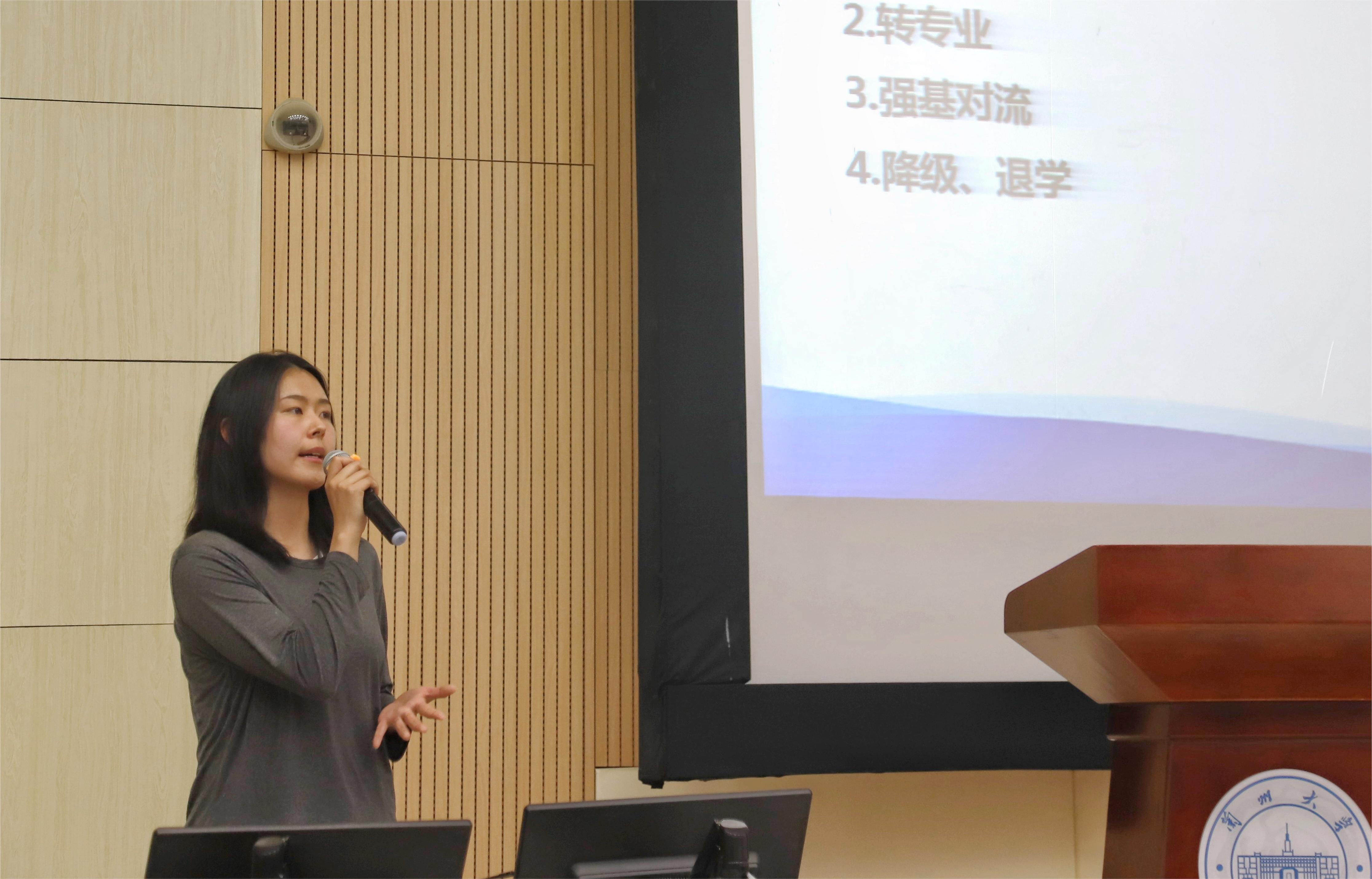 随后焦巧会结合近期即将开展的转专业、专业分流、强基对流等教学工作进行了说明,提醒同学们关注相关工作通知,结合个人特点及实际学习情况做好规划。她还对降级、退学的标准做了强调,告诫同学们要养成良好的学习习惯,强健体魄,以积极的心态面对生活。