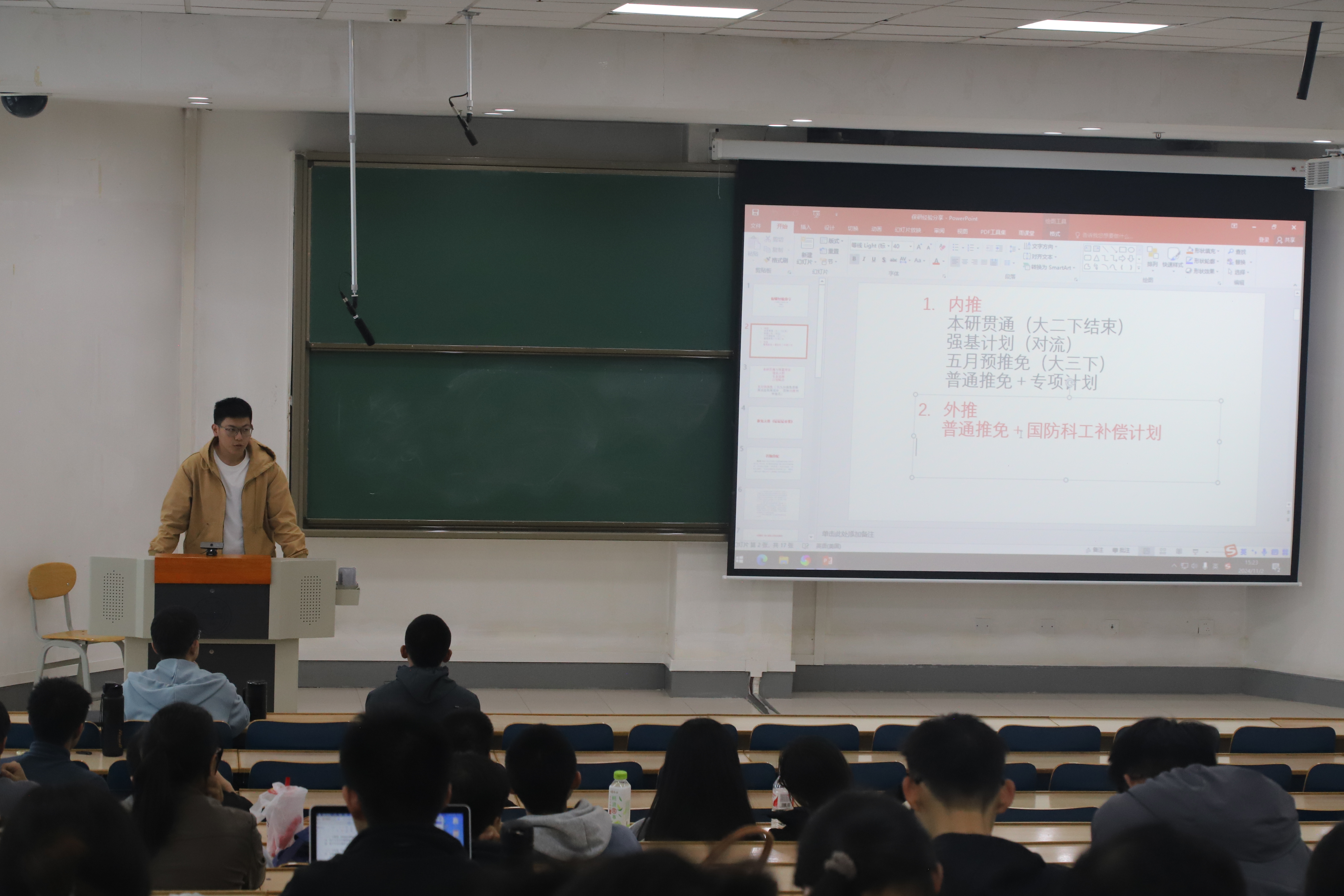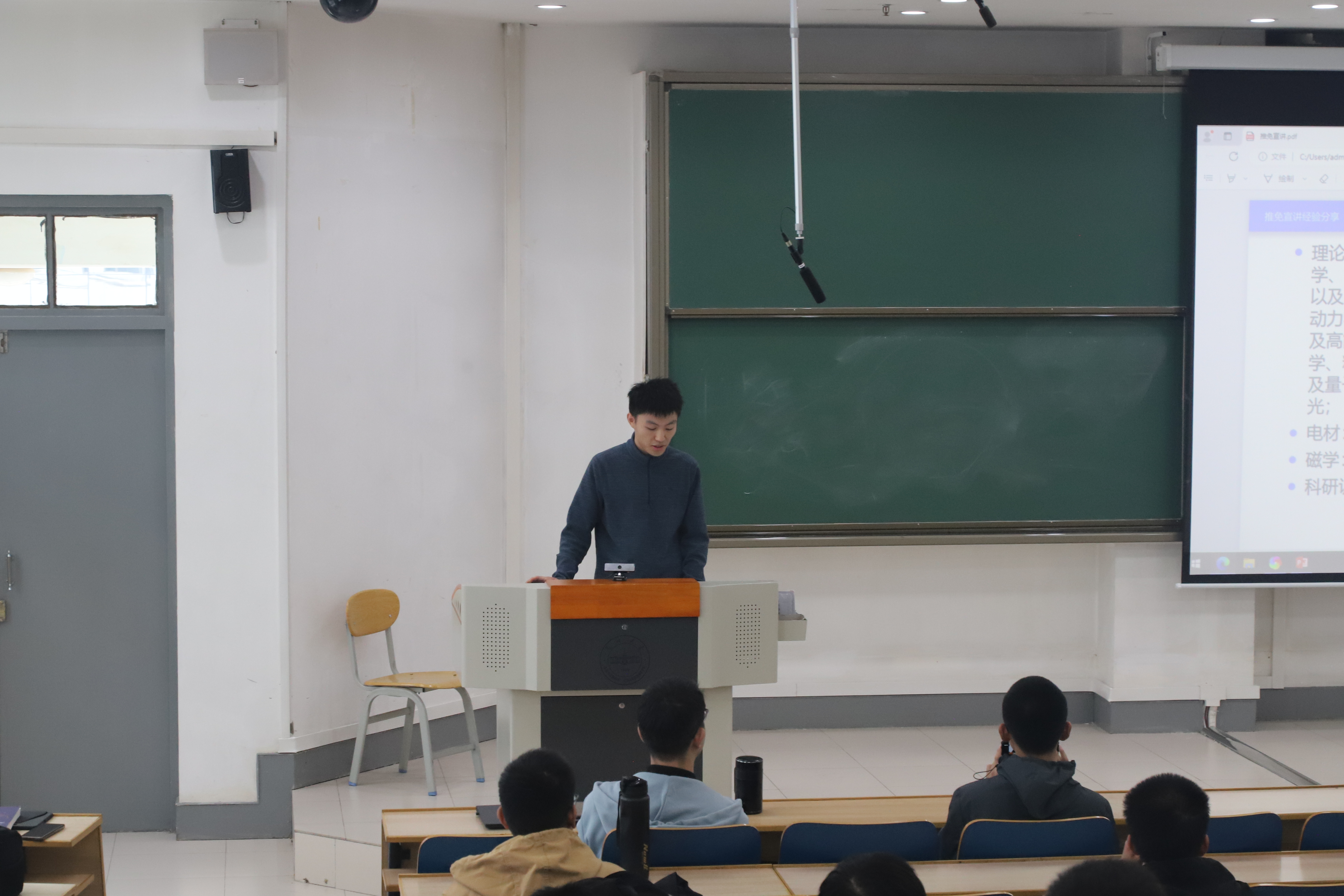 为帮助同学们进一步了解推免有关信息和注意事项,11月2日下午,物理学院在天山堂C201召开推免经验分享会,学院学业发展中心、“格物穷理”学业指导工作室邀请了2021级物理学(理论物理)专业闫鹏宇、微电子科学与工程专业邹嘉良进行分享。会议由2022级微电子科学与工程专业本科生钟雨婷主持。
