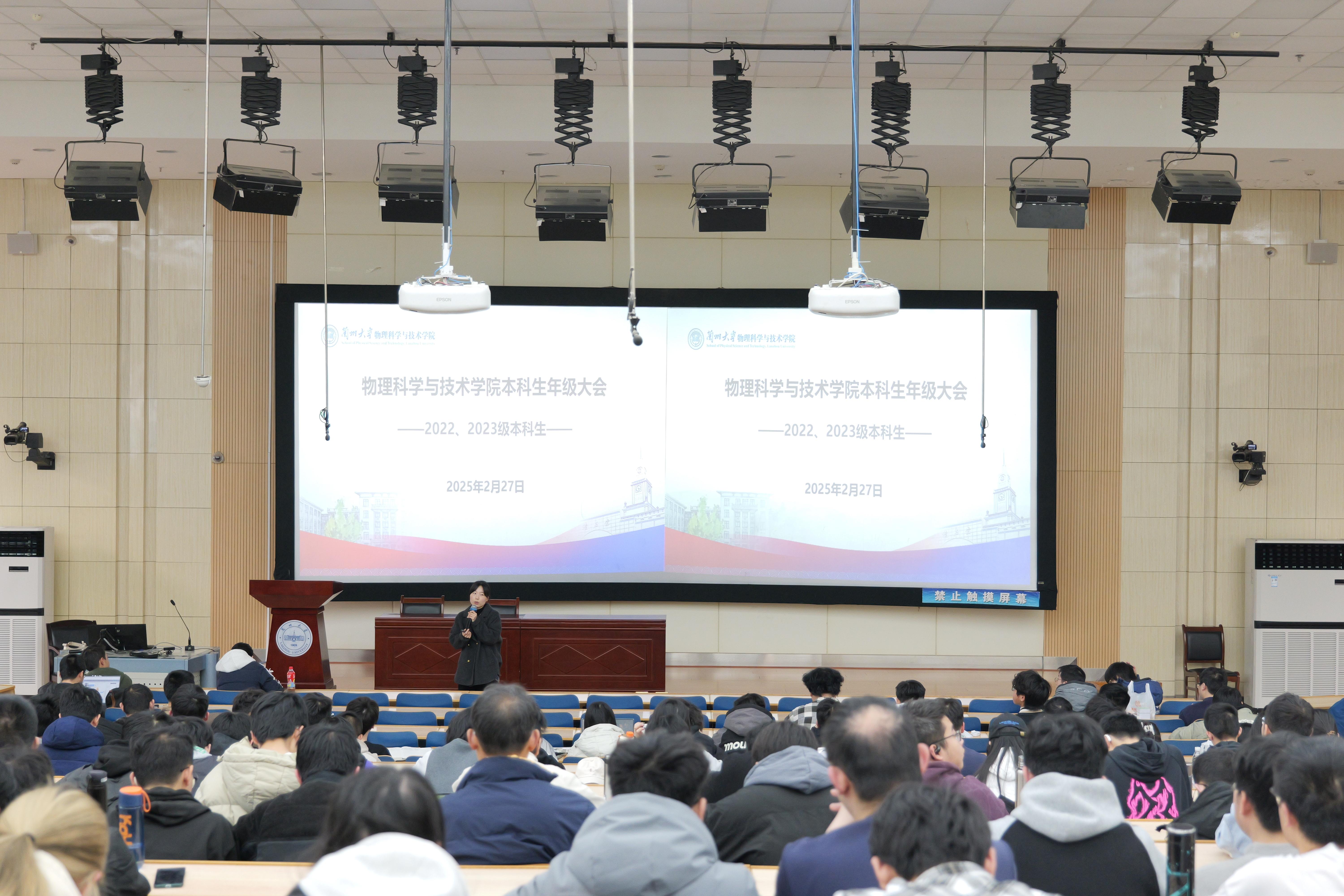 2月27日下午,物理科学与技术学院在榆中校区天山堂C301召开2022级、2023级本科生年级大会,学院副院长王建波、本科生辅导员李玉琼,以及2022级、2023级本科生参加会议。会议由李玉琼主持。