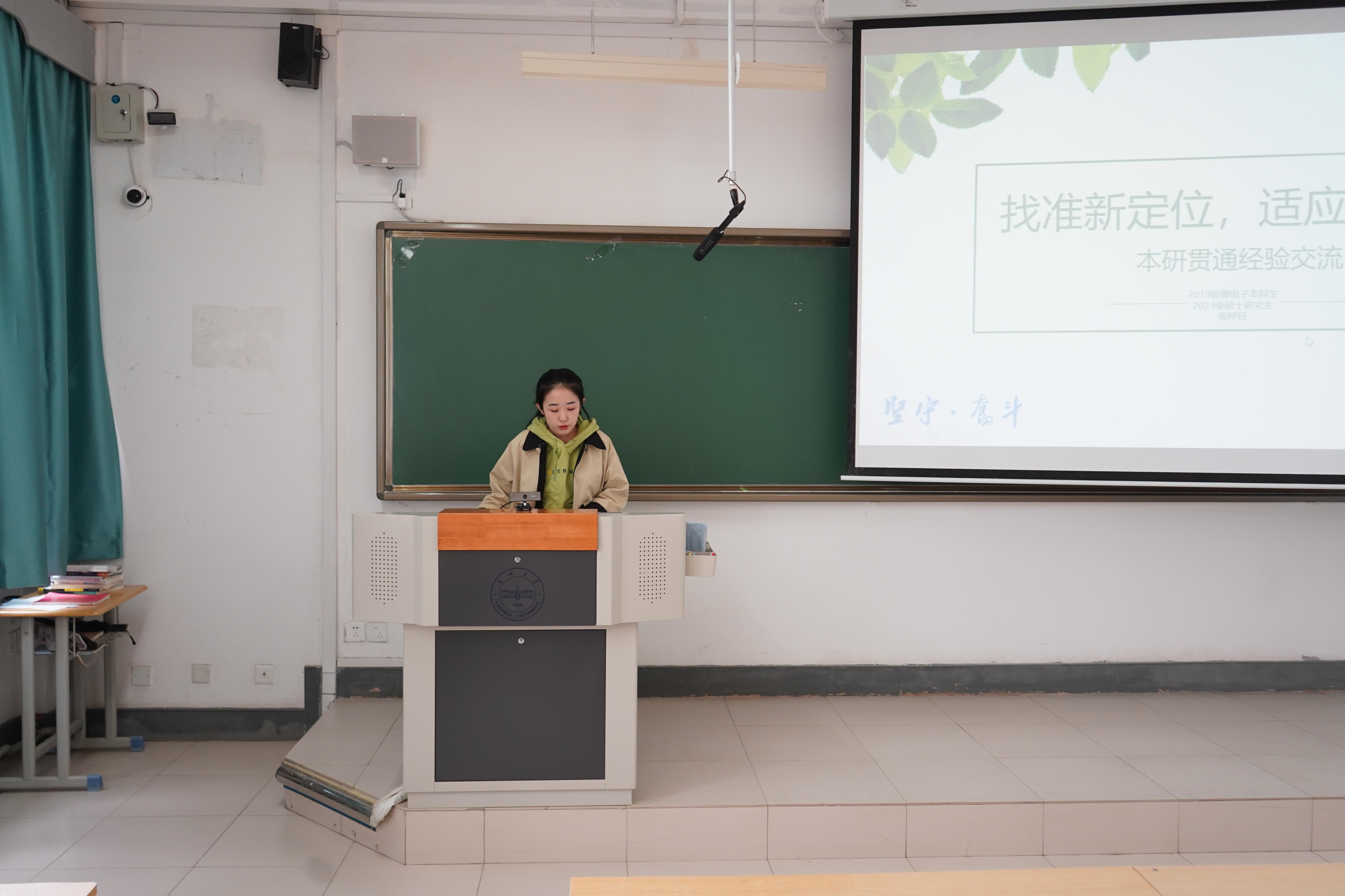2023级电子科学与技术专业硕士研究生张婷钰从研究方向、学习年限、政策激励三个方面向大家分享了本研贯通计划的优势,向同学们介绍了半导体器件模拟、半导体材料、电路和器件设计等方面的具体研究内容和就业方向,强调同学们应该以职业规划为核心,科学规划研究生阶段的学习生活。