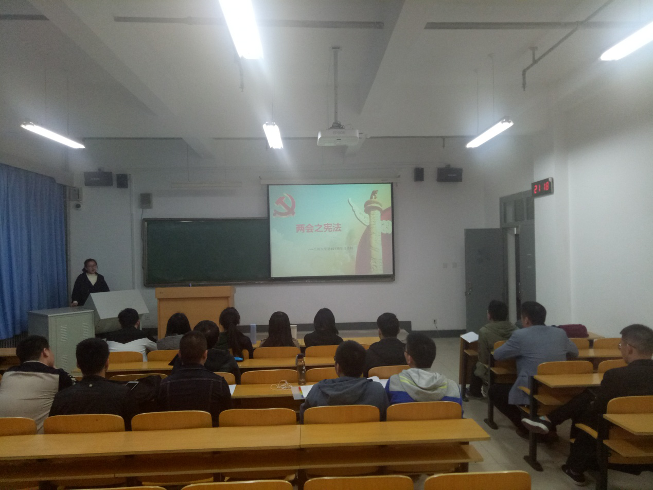 3月15日下午,学院本科生党支部两会之宪法在榆中校区天山堂A103举行。本次学习由学院支部负责人禹辉主持,带领大家学习贯彻了兰州大学第161期学习资料。