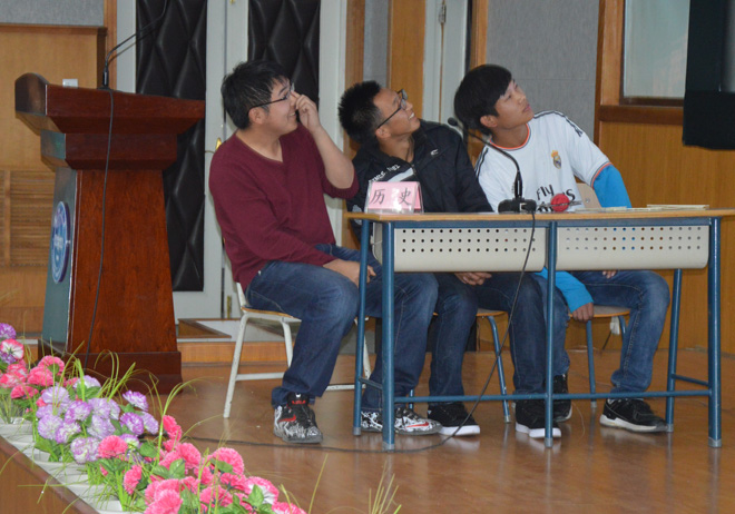 在现场观众答题阶段,众多现场观众争先恐后地举手抢答,并且答对的观众还能领到精美的小礼品,高尚老师和马俊老师也参加进来,气氛十分活跃。同时羽扇纶巾的“军师裁判”、身穿“奇装异服”的“外星人礼仪”、端庄女主持和帅气的男主持们,这些都为活动增色不少。