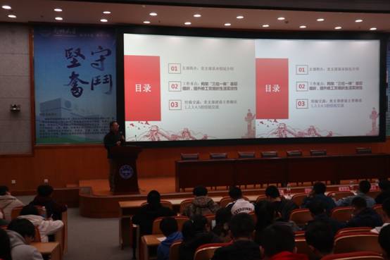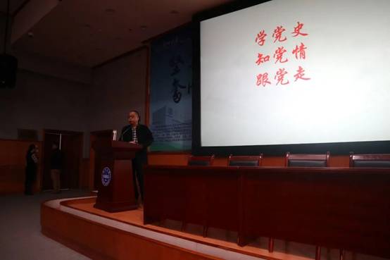 党委书记吴国军围绕“学党史、知党情、跟党走”这一主旨,为同学们系统地讲解了中国共产党党史,从我党不同历史时期的发展,到领袖、先驱、功勋、英烈等党史人物,并着重讲解了对我党产生深远影响的几大会议和我党的建设过程。