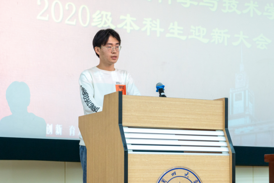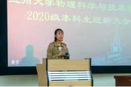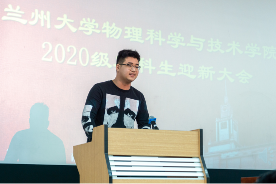 2020级物理学类专业张玉铎代表全体新生发言。张玉铎表态,在未来的大学四年中会以自己的身体健康为重,牢牢抓住大学这一拼搏的机会,广泛交友,尽快适应大学生活。