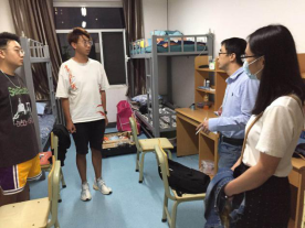 9月7日晚7点,学院党委副书记王岩、副院长刘玉孝、辅导员张晓晓、研究生秘书杜艳芳及研究生会干部到新生公寓走访慰问。王书记、刘院长与学生亲切交流,鼓励学生多与导师联系,多去自习室、实验室,规划好研究生阶段的学习生活,处理好宿舍关系,保持初入校时的精神面貌,离校时成为更优秀的自己。学院各位研究生工作负责老师也同学生交流了入学后的学业规划、日常管理等相关事宜,提醒学生关注工作群及学校、学院网页,及时掌握关键信息,高效学习生活。