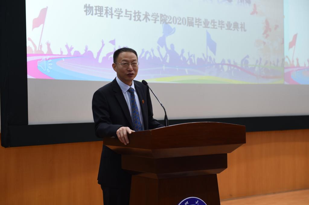 2016级物理学一班班主任彭尚龙、研究生导师高大强分别寄语毕业生,希望他们继续保持平和心态、不忘学习、勤于实践、学会做人,表达了学院教师对毕业生的殷切期望和诚挚祝福。