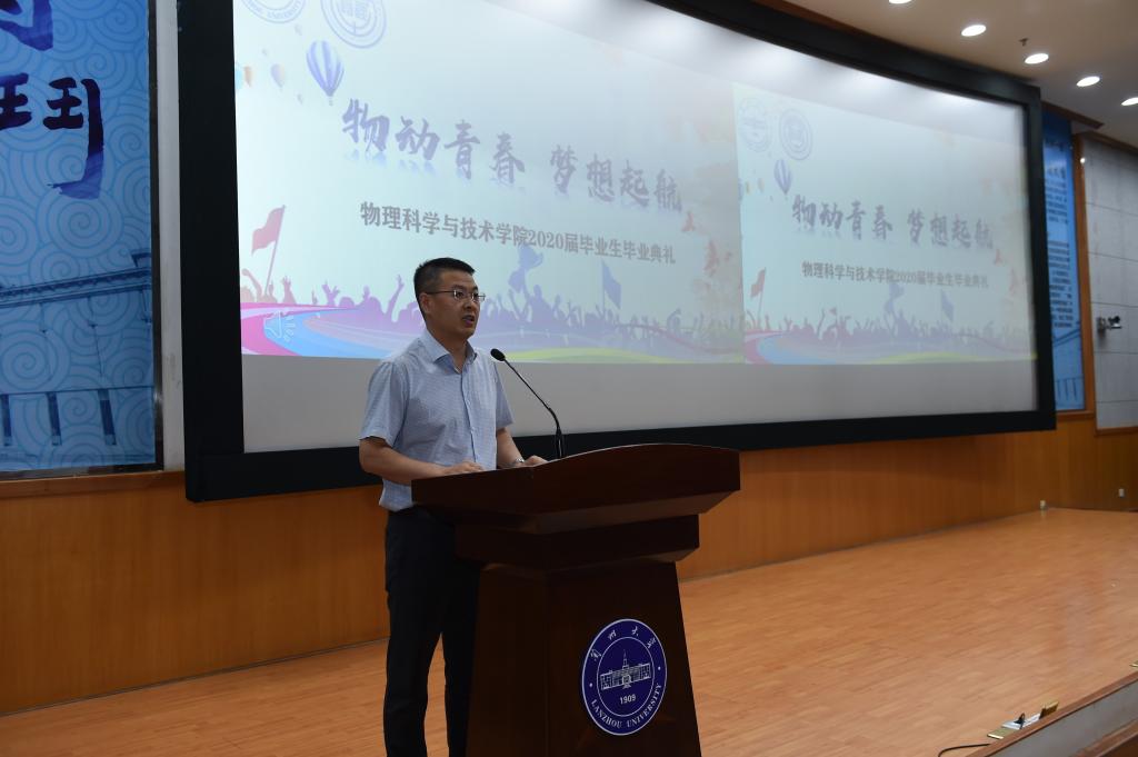 6月19日上午,开云online(中国)“物动青春 梦想起航——2020届学生毕业典礼”在榆中校区天山堂C302举行。副校长曹红出席,学院领导班子、教师代表和2020届全体毕业生参加典礼,典礼由学院党委副书记王岩主持。