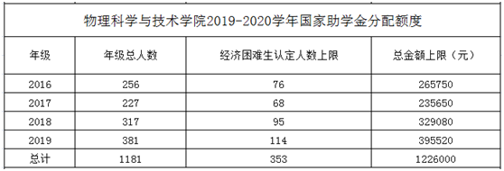 2.各年级要切实发挥好国家助学金助困、育人作用,统筹国家助学金的三个等级;各年级助学金总金额不能超过划拨金额数,且国家助学金评定人数原则上与家庭经济困难生认定人数一致。