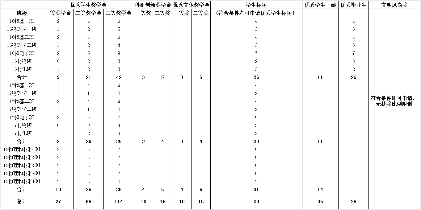 重要说明:所有奖项以综合测评所在班级为单位推荐、报送材料,各班班长主要负责;不接受个人提交申请材料。