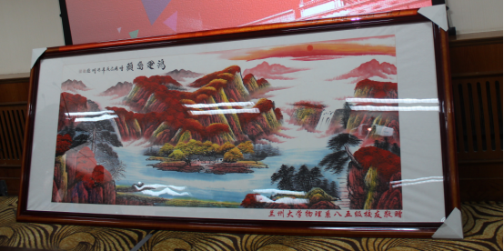 会上,85级全体校友为学院捐赠了“鸿运当头”书画作品,祝愿学院事业发展再创辉煌,并向参加座谈会的老师们呈送了纪念品。物理学院为每位返校校友赠送了精心准备的礼物。