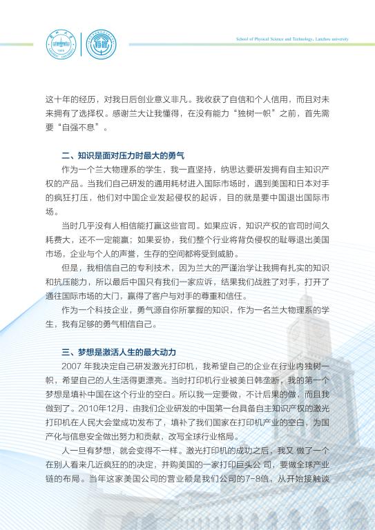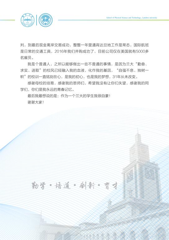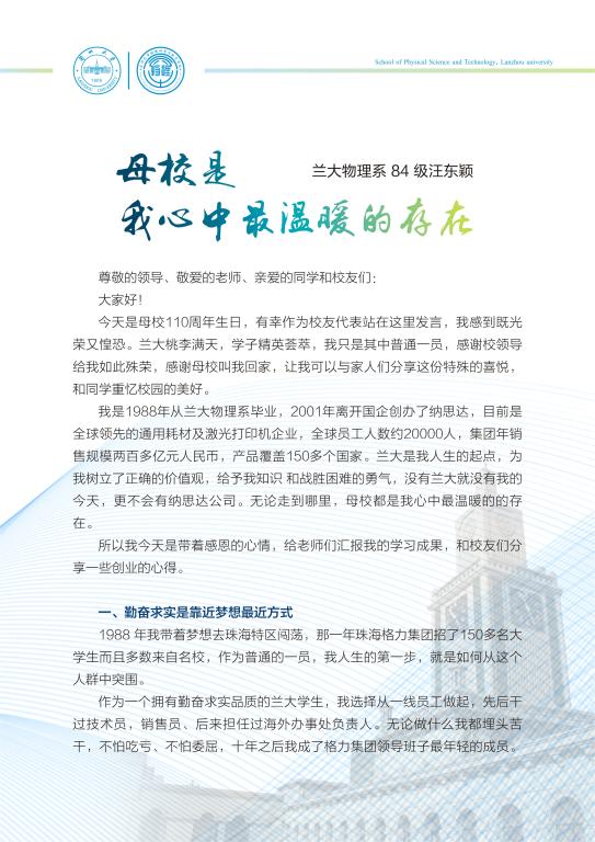 我院84级校友汪东颖在“甘肃省 兰州市 兰州大学共建世界一流大学启动暨兰州大学建校110周年纪念大会”上的发言