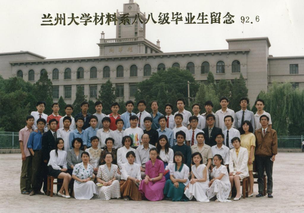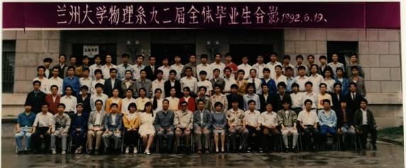 第二排左起:黄启秀、潘新莉(老师)、邓桂蓉(老师)、张玉秀(老师)、袁桂珍(老师)、王天民(系主任)、陈明(班主任)、王维洁(老师)、王志宏(老师)、张水合(老师)、刘汉芳