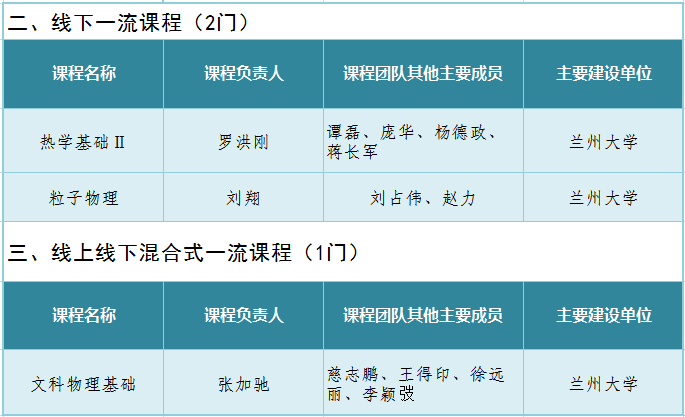 10月29日,教育部通过申报推荐、网络评审和会议评审网络公示了“首批国家级一流本科课程认定结果”,兰州大学共计13门课程入选,物理学院组织申报的三门课程成功入选。其中,罗洪刚教授主持的《热学基础Ⅱ》、刘翔教授主持的《粒子物理》入选首批“国家级一流本科课程”之线下一流课程,张加驰副教授主持的《文科物理基础》入选首批“国家级一流本科课程”之线上线下混合式一流课程。