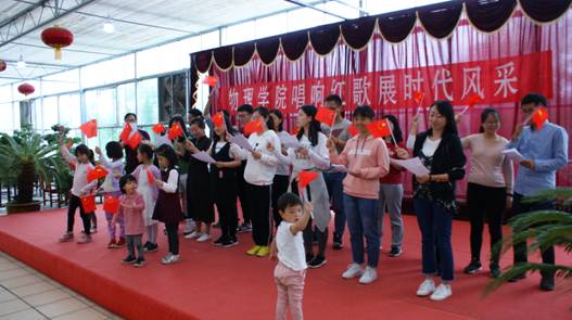 活动在《歌唱祖国》的合唱声中拉开序幕,参赛表演者依次登上舞台,唱响了《团结就是力量》、《我和我的祖国》、《映山红》、《大中国》、《在那桃花盛开的地方》等一首首脍炙人口的经典歌曲。本次活动主题鲜明、氛围热烈,大家精神饱满,以嘹亮的歌声抒发对党的崇敬与热爱,用真挚的感情表达对祖国、对百十兰大的美好祝福和永远跟党走的坚定决心,同时,进一步凝聚人心、鼓舞斗志,弘扬物理学院不忘初心、悟道育人的精神,展现了新时代开云online(中国)师生员工风采及学院风貌。