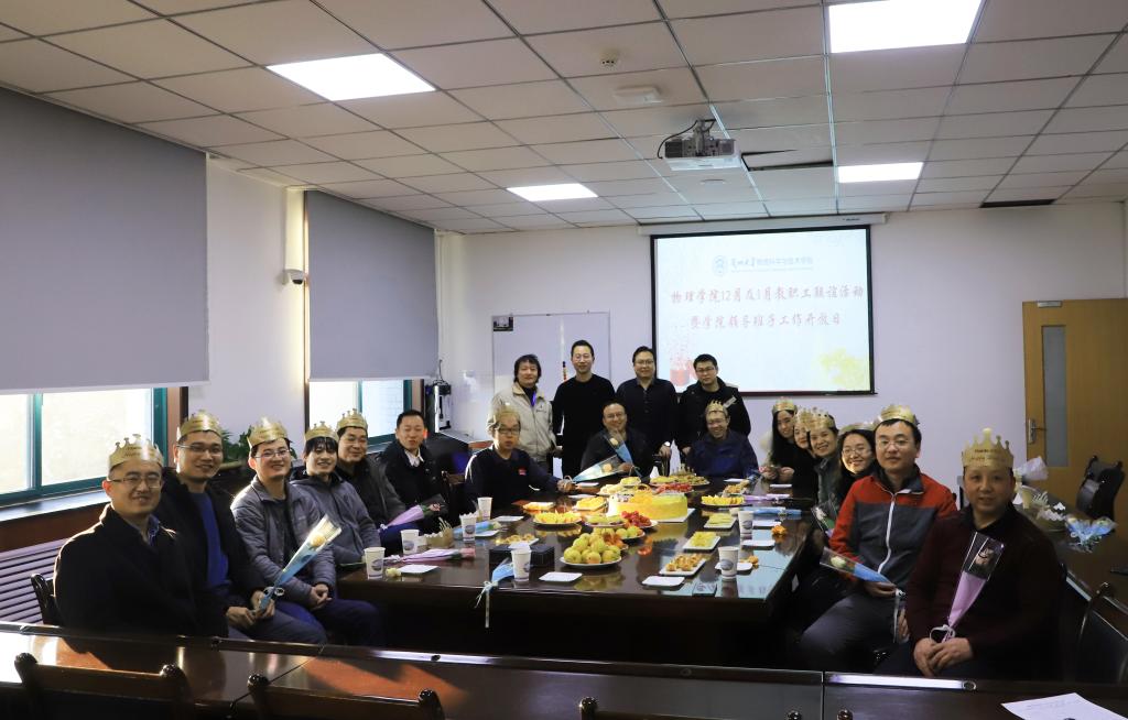 寒风凛冽,但关怀温暖;聚会短暂,但情谊绵长……12月27日下午,物理学院2019年度最后一次教职工联谊会暨学院领导班子工作开放日活动在格致楼4022会议室如期举行。由于即将迎来寒假,学院工会决定邀请12月及1月生日的老师共同参加本次活动,二十余位老师欢聚一堂,在这样一个辞旧迎新的时刻,大家共同庆祝,气氛温馨而热烈。学院党政负责人和教职工一起参加了活动。本次联谊活动由学院工会主席史慧刚主持。