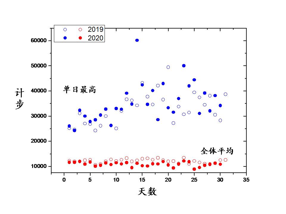 本次活动采取教职工自愿参加的方式,健步路线及时间自行选择,要求不扎堆、不聚集。活动期间,大家士气高涨,积极健身,每天人均步数在1万步以上,单人日最高步数达6万步。与去年情况类似,后三周的最高步数比前一周提高约1万步。整个健步月期间,学院教职工步行共计约3千万步,约2万公里,人均约200公里。获奖的前32名教职工中近一半是新面孔,充分展现了物理人的勃勃生机。