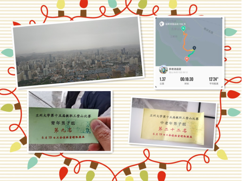 此次登山比赛分为青年男子组、女子组和中老年男子组、女子组等4个组别。起点为五泉山公园“霍去病”塑像前,终点为兰山二台阁,经过激烈的角逐,学院王振坤老师获青年男子组第9名,肖春涛老师、朋兴平老师分别获中老年男子组第15名和第22名。