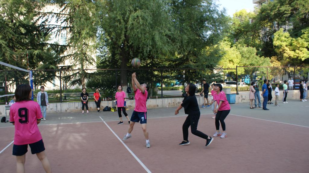 排球比赛是我校教职工体育健身活动的传统项目之一,深受教职工的关注和喜爱。本次比赛分两个阶段进行,第一阶段采用分组单循环制,取前八名参加第二阶段的单循环赛。在第一阶段的比赛中,物理学院男女两队各进行了3场比赛,其中男队分别对阵图直、基础、数学,女队分别对阵基础、生科、数学。期间,男队与数学院队的角逐最为激烈,两局中比分都出现了23:23,最终男队挺进8强。在第二阶段的比赛中,男队分别对阵后勤、网络和机关三支劲旅,荣获本届比赛男子组第七名。7月4日上午,所有比赛结束后,全校参赛队员还联合组织了男女各一只队伍,与体育教研室的专业运动员进行了精彩的表演赛,将本次比赛推向了高潮。