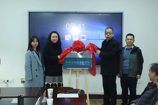 学院党委书记吴国军、院长刘翔,姚池、唐珺共同为联合实验室揭牌。刘翔从至公精神永流传、格物致知开篇章、格物致行育华章、格物致新谱新章四部分介绍了学院发展历史和基本情况,姚池从公司产业规模、产品研发、人才发展平台、文化环境等方面介绍了拓尔微电子股份有限公司基本情况,双方沟通了联合实验室合作进展。