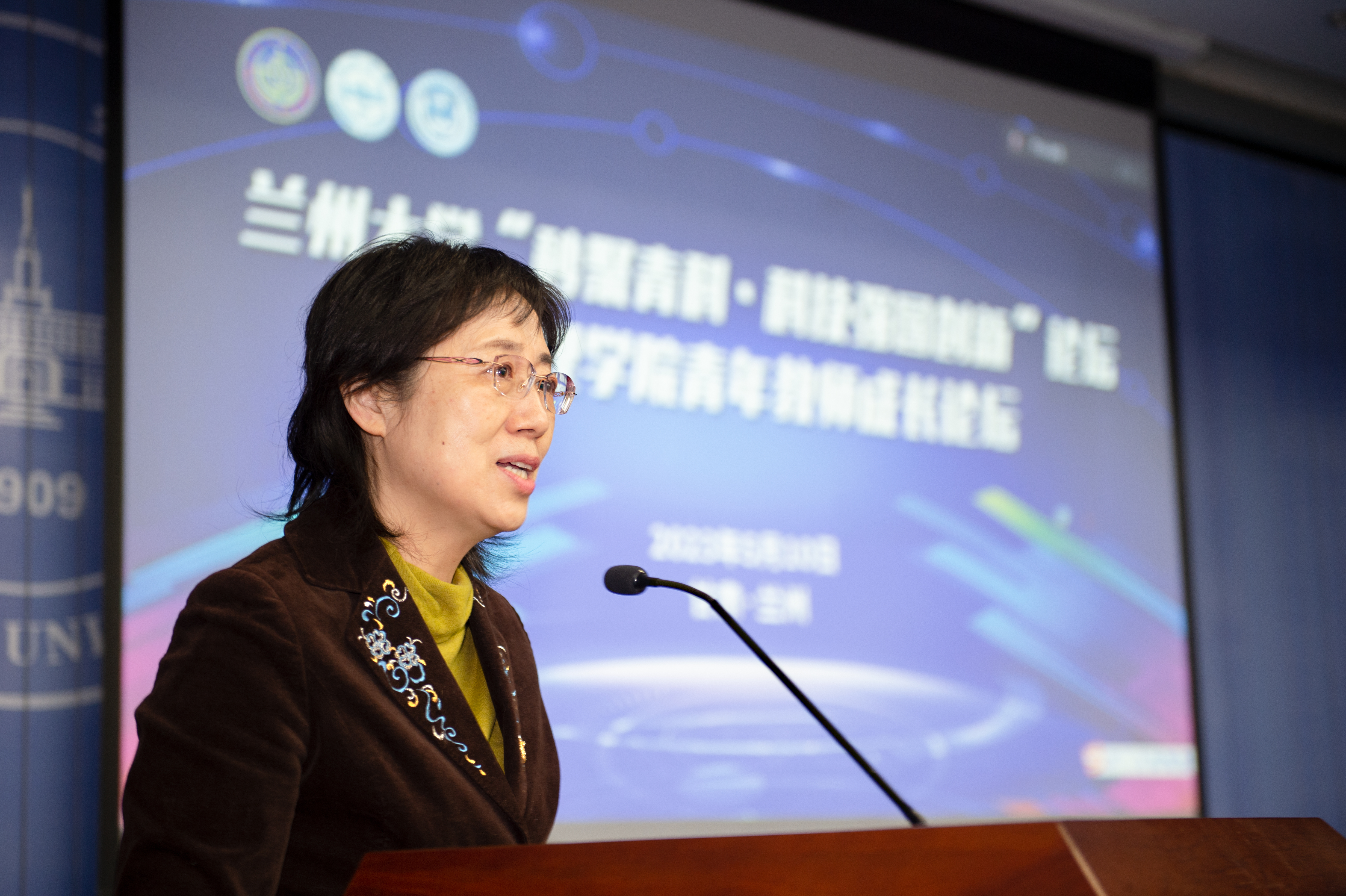论坛开始前,兰州大学党委书记马小洁在逸夫科学馆贵宾厅会见了李得天院士。