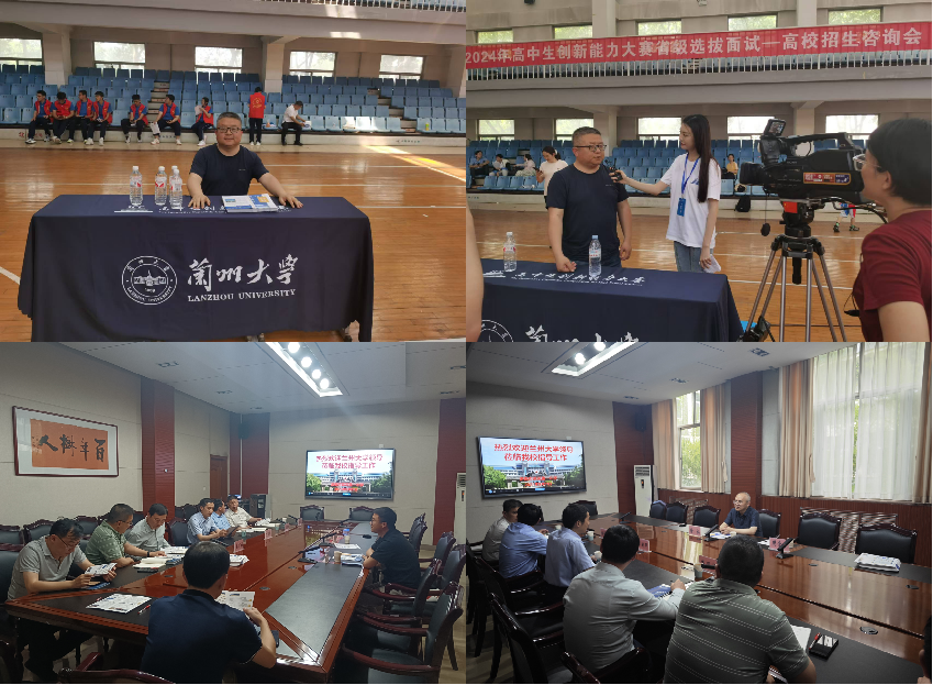 在济南地区,5月18日下午崔腾虎老师参加了在济北中学举行的全国高中生创新能力大赛省级选拔面试(山东)双一流高校招生政策咨询会,面向来自山东省内几百所高中的近千名参赛学生和家长开展了咨询活动。通过咨询引导和帮助优秀学生和家长进一步了解和关注兰州大学。同时还接受了组委会的专门采访,就兰州大学的基本情况、办学特色、综合实力以及兰州大学各专业在山东近年来具体的招生录取情况等做了详细的介绍。5月21日下午徐灿和樊金雷老师走进济南莱芜一中,同莱芜一中校长丁兆华和高三年级老师等进行了座谈和交流。座谈中,丁校长对兰州大学招宣组的到来表示欢迎,双方分别介绍了兰州大学与莱芜一中的基本情况、人才培养特色和生源质量等,双方还就今后在加强科普报告和研学等领域的合作交流达成了共识。