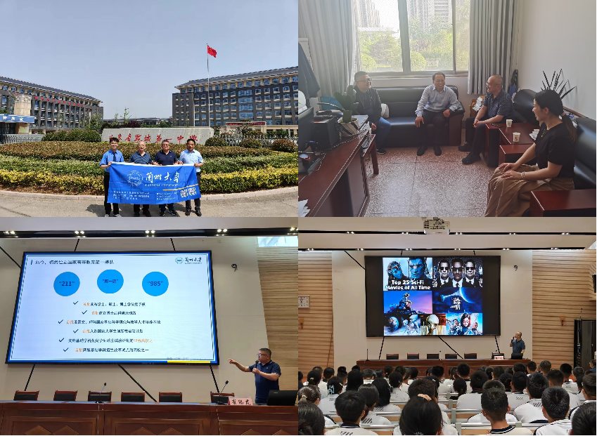 在菏泽地区,5月16日下午徐灿、崔腾虎和山东招生专员刘龙以及菏泽校友陈玉一起走访了菏泽一中。首先招宣组老师同菏泽一中副校长陈洪昌校长进行了座谈交流,双方就进一步深化合作交流达成了一致。座谈后崔腾虎老师给部分高二学生做了题为《青出于兰,大有可为》的兰州大学招生宣讲,徐灿老师做了题为《科学让梦想照进现实——光学镊子简介》的科普报告,受到了同学们的热烈欢迎。5月17日上午徐灿、崔腾虎和菏泽校友郓城县政府办公室主任时培举以及菏泽校友蒋亦多一起走访了郓城一中。郓城一中党委书记杨恩建,党委副书记、校长祝令杰热情接待了兰州大学招宣组一行,座谈中双方对深化“双高”合作表达了强烈意愿。在稍后的专场宣讲活动中,崔腾虎老师给部分高一学生做了题为《青出于兰,大有可为》的兰州大学招生宣讲,徐灿老师做了题为《科学让梦想照进现实——光学镊子简介》的科普报告。通过听取报告,同学们对兰州大学有了一定了解,同时也增加了对科学前沿技术的认识,学习积极性被激发,探索科学的兴趣被点燃。