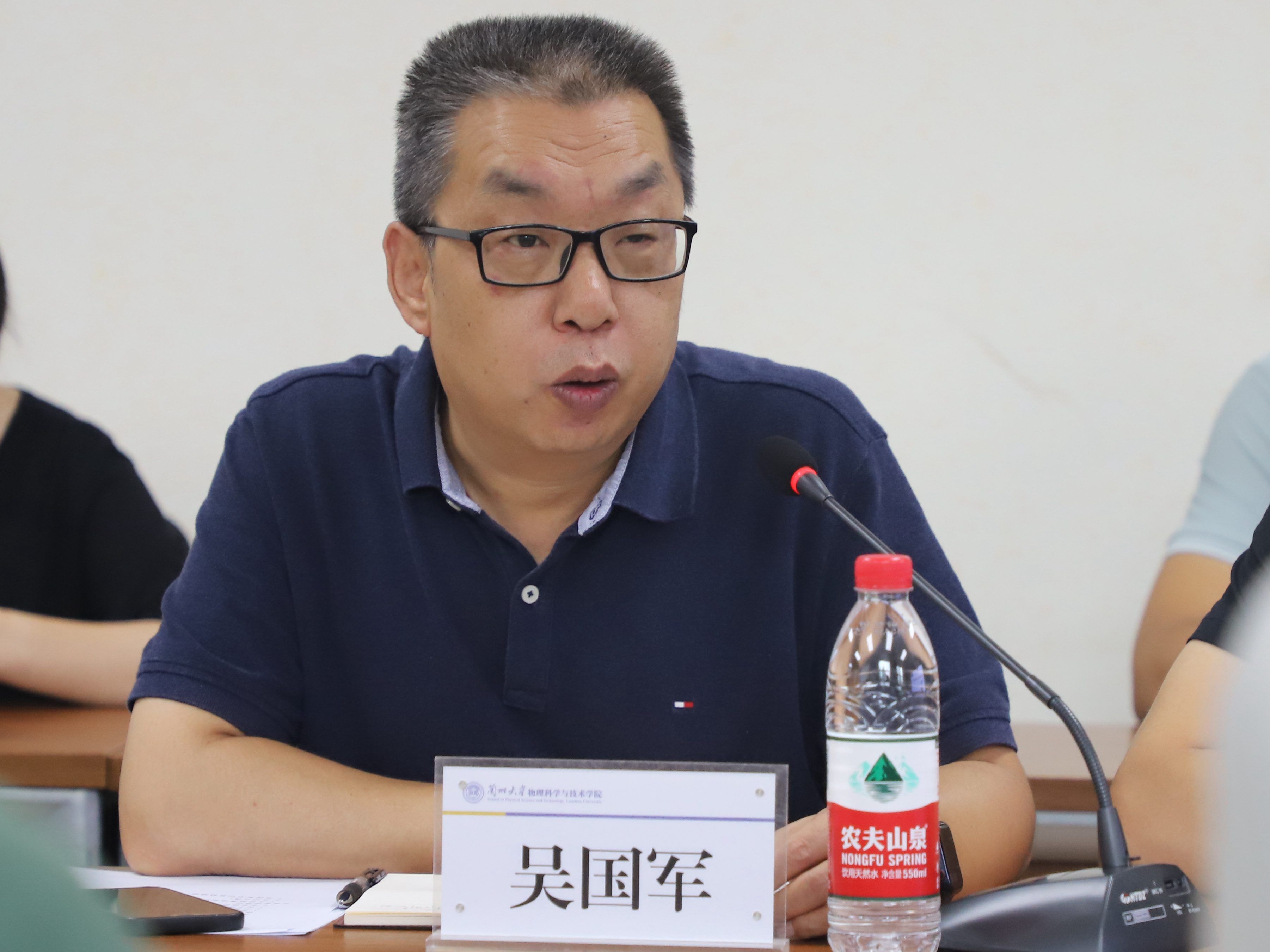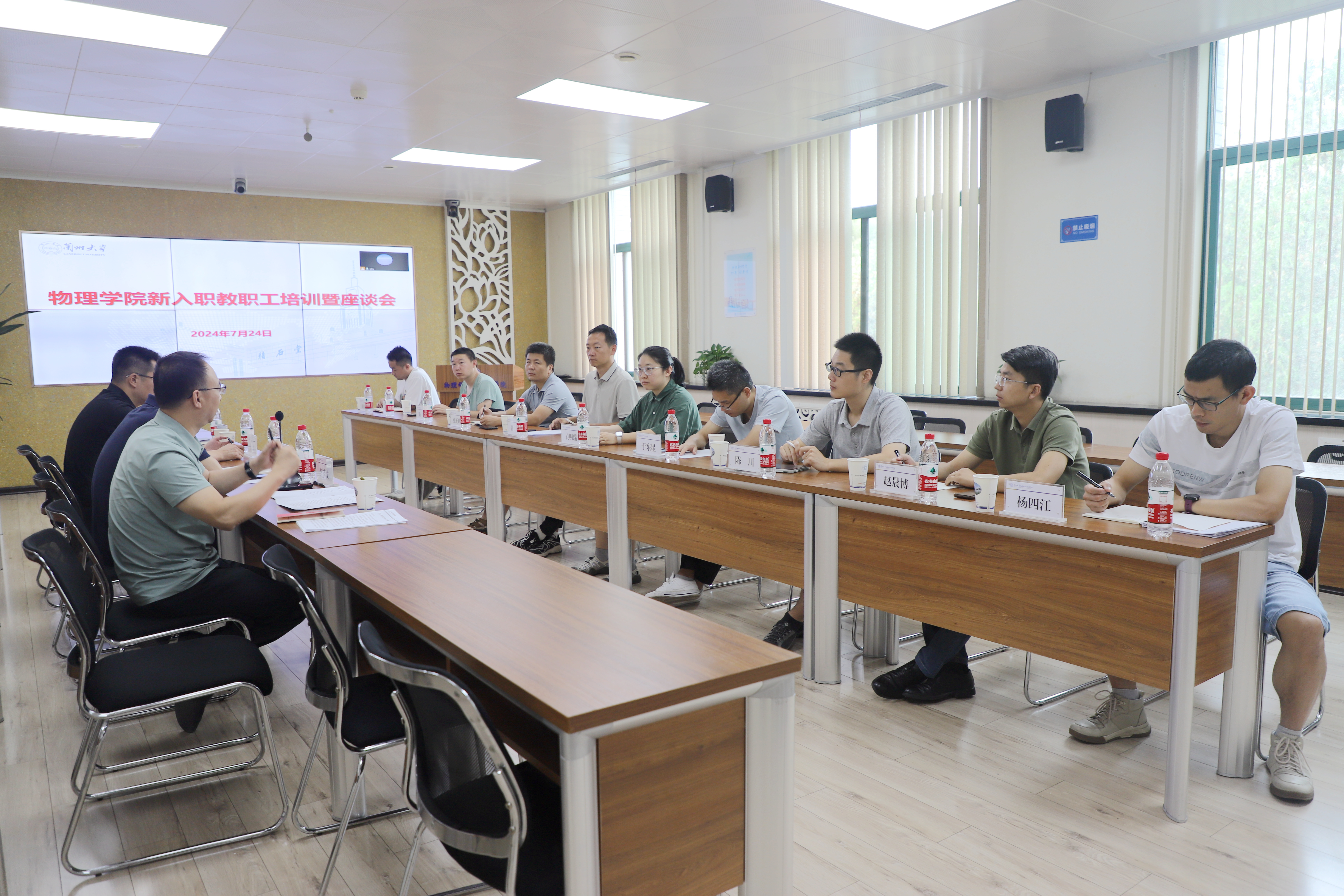 7月24日,物理学院在城关校区格致楼举办新入职教职工培训暨交流座谈会,新入职教职工、部分班子成员、办公室人员参加会议,会议采取线上线下相结合的方式进行,由党委书记吴国军主持。