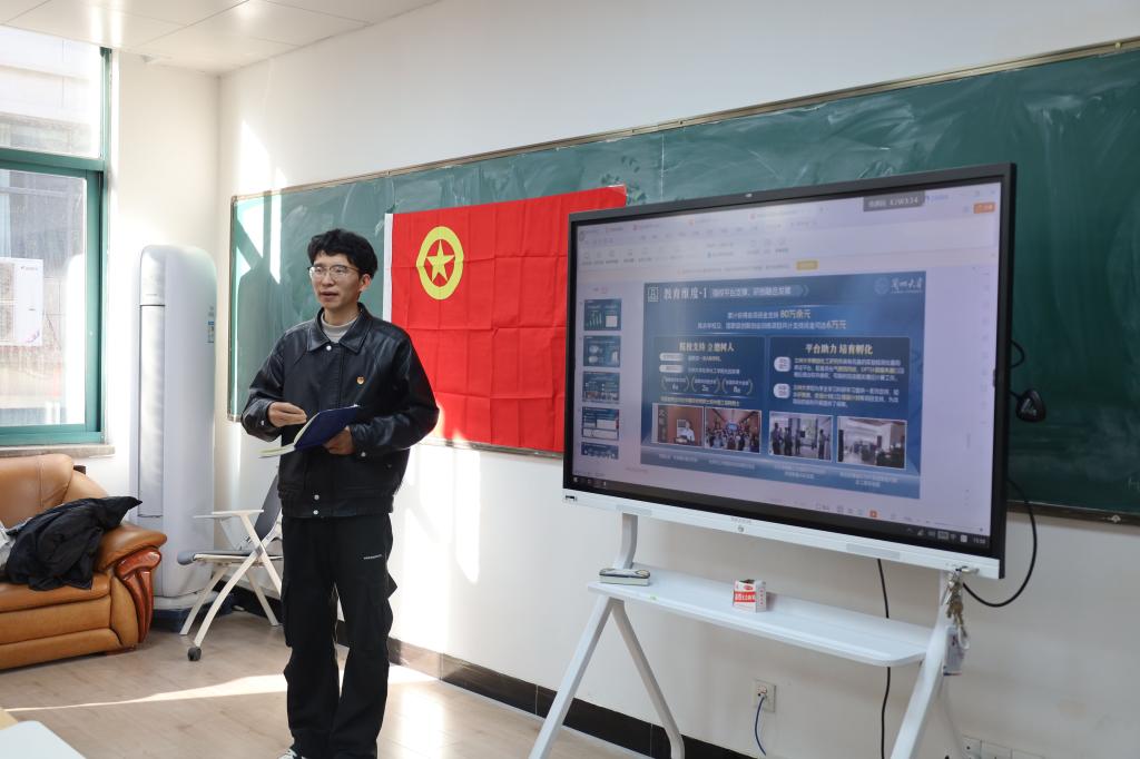 活动邀请中国国际大学生创新大赛(2024)金奖团队成员、化学化工学院2021级本科生陈明富交流分享了学习《习近平给中国国际大学生创新大赛参赛学生代表的回信》的心得体会和参加创新创业活动的经验,他谈到作为青年大学生要保持斗志、练好内功,以更加饱满地热情和澎湃的动力投身科技强国事业,践行习近平总书记的殷殷嘱托。凝聚态研究生五班团支部张天尧代表新发展团员发言,表示将肩负起共青团员的光荣使命,践行习近平总书记开云登陆入口发展新质生产力的重要指示,将个人的理想追求融入国家发展大局,为强国建设民族复兴伟业挺膺担当。2021级本科生洪雨欣代表优秀团员发言,她结合自身开云online(中国)经历,鼓励同学们在拼搏实干中创造业绩、在点滴小事中满怀感情地为他人服务,在励志求学、知行合一的实践中书写闪光的青春。