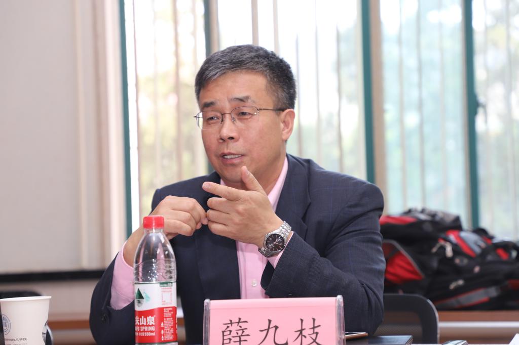 罗洪刚院长首先对薛九枝校友一行来我院进行座谈交流表示欢迎,并简要回顾了当年CUSPEA考试情况。随后,罗洪刚从历史发展、人才培养、师资队伍建设、学科发展等方面介绍了我院目前的发展情况,并着重汇报了我院综合改革以及学院“院—企、院—所、院—院”合作计划开展实施情况,他讲到:“物理学院从2017年9月启动了以“教学改革”为牵引的综合改革方案,本着‘分级教学、分类培养、厚实基础、宽泛出口’的原则,校内依托课程群组建教研室,实行分级教学,分类培养;积极走访联系企业、研究所、高校,搭建多层次人才培养平台,积极推动新工科项目建设。而此次薛师兄一行的到来,一定会对学院今后的发展起到很大的帮助和推动作用。”