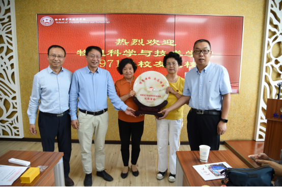 会上,1971级无线电物理专业全体校友为学院捐赠了“情系母校 不忘师恩”工艺品,祝愿学院事业再创辉煌,永攀高峰。学院也为每位返校校友赠送了精心准备的礼物。