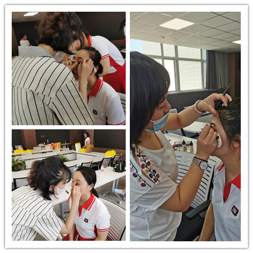 赛前,队员们耐心化妆,准备好以最亮丽的姿态迎接比赛。