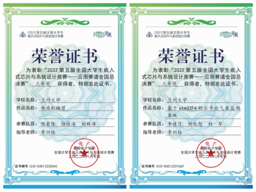 2022年8月6-7日,2022年第五届全国大学生嵌入式芯片与系统设计竞赛全国总决赛在南京举行。物理学院学子在此次比赛中再创佳绩,荣获国家级三等奖两项。