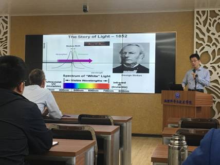 在报告中,黄岭教授首先介绍了稀土元素的电子结构和发光材料在生活中的应用,然后详细介绍了以含有稀土元素钪(Sc)的材料为基质的发光材料的研究进展,以及其组内的相关工作。他们的研究结果表明六方相 NaScF4:Yb/Er 纳米颗粒是一个很好的红色上转换发光基质,在首次报道了此现象后,他们课题组又对其他稀土掺杂的钪基纳米材料的发光行为进行了系统的研究,对钪基纳米发光材料有了一些新的认识。在精彩报告结束后,黄老师与现场师生进行了深入的讨论并认真解答了相关疑问。