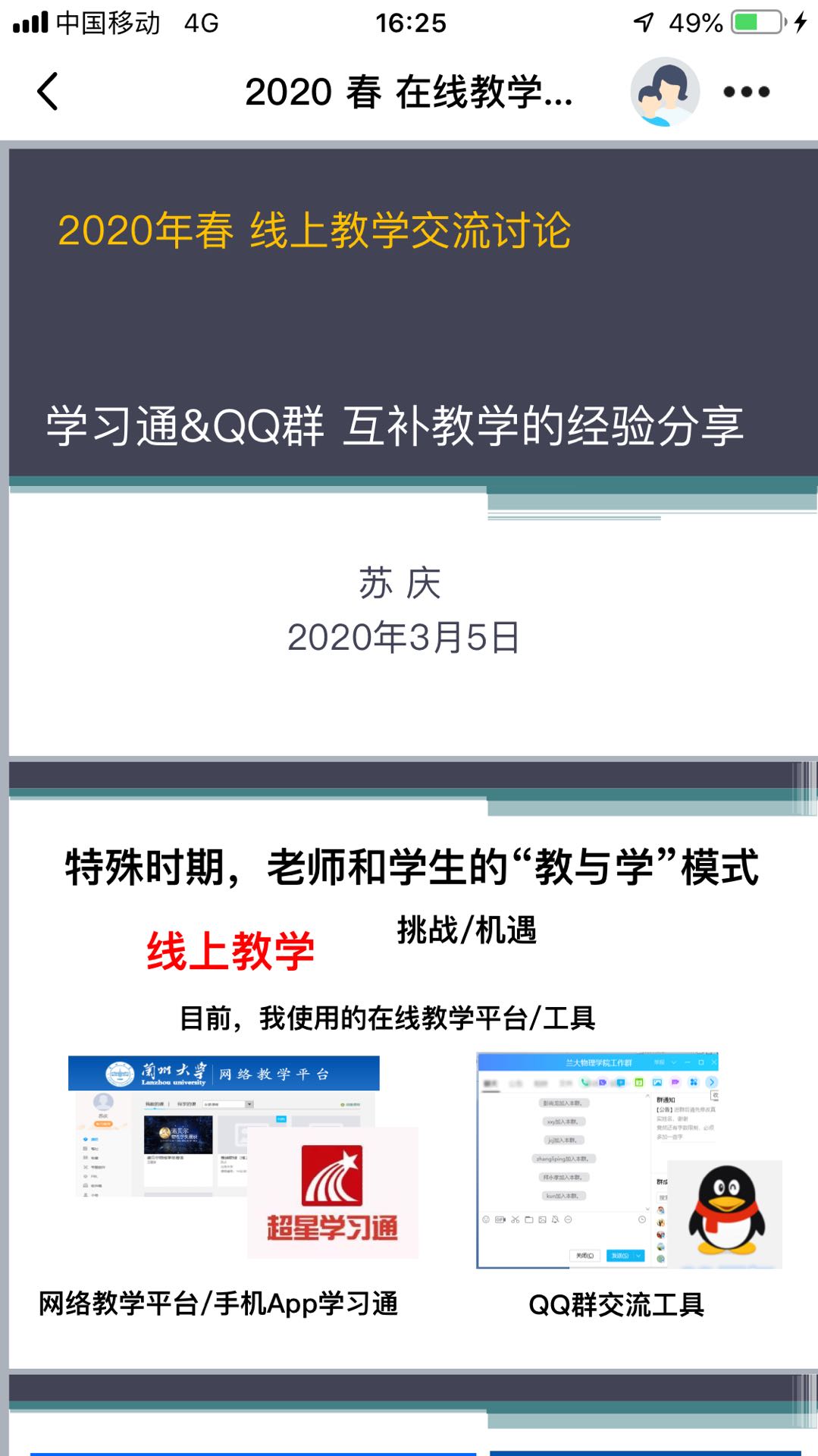 为进一步落实《教育部应对新型冠状病毒感染肺炎疫情工作领导小组办公室开云登陆入口在疫情防控期间做好普通高等学校在线教学组织与管理工作的指导意见》《兰州大学2019—2020学年春季学期疫情防控期间在线教学工作方案》等文件精神,响应学校开云登陆入口“停课不停教、停课不停学”的总体要求,保障2020年春季学期延期开学期间线上教学工作顺利开展,提升教师在线教学和信息技术应用能力与水平,3月5日下午,物理学院组织教师开展线上教学培训,利用QQ屏幕分享进行在线教学培训。副院长王建波及学院教师近30人参加培训。