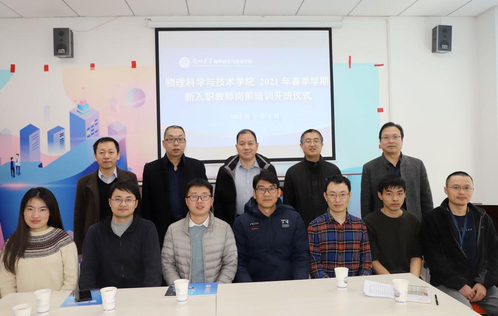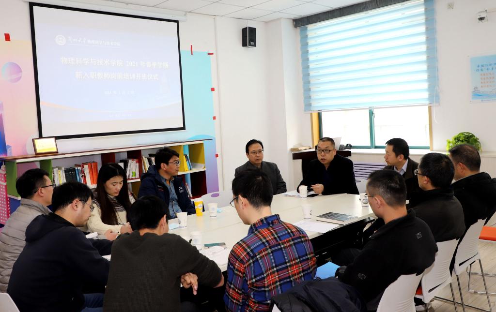 为帮助新入职教师更好地胜任教学工作和履行岗位职责,提高专业素养和教学能力,积极融入学院的发展建设,3月4日下午,物理学院在格致楼3005教工之家举行了2021年新入职教师岗前培训开班仪式。学院党委书记吴国军出席开班仪式并讲话,工会主席史慧刚,培训老师谭磊、蔡让岐以及参加培训新教师参加本次活动。副院长王建波主持开班仪式。