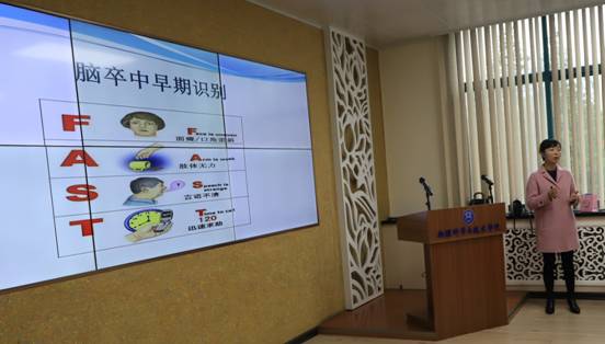 为舒缓教职工紧张的工作压力,更好地为教职工服务,提高大家对健康的认知,增强健康保健素养,20191024日下午,开云online(中国)工会在格致楼3016会议室举办健康保健知识系列讲座。讲座邀请兰州大学第二医院神经内科总护士长吴银瓶为大家带来健康保健知识系列讲座第一讲如何做好自我健康管理——脑卒中篇。此次讲座由学院工会李海蓉老师主持,学院行政副院长李星波、部分中青年教师及离退休老师共二十余人参加了讲座。