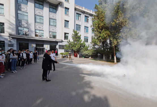 物理学院2022级全体研究生新生和新入职教工参加了培训讲座。讲座结束后,进行了疏散逃生和消防培训演练,格致楼全体师生同时参与。活动采用“演习烟雾发生器”模拟火灾烟雾场面,师生在消防警报和演习烟雾环境中,按照格致楼预定疏散路线及逃生防护要求迅速有序撤离。安全警报解除后,在格致楼外广场,龙杨军教员就灭火器的使用进行了讲解和培训,学生使用灭火器对演习火堆进行了现场灭火操作。