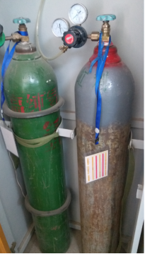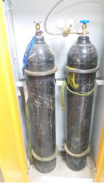 全院涉及到气瓶及用气安全的实验室共有81个,气体种类有“氢气、氢气氩气混合气体、甲烷、乙烯、乙炔、硅烷、磷烷、硼烷、锗烷、硫化氢、六氟化硫、四氟化碳、氨气、一氧化碳、二氧化氮、氧气、空气混合气体、氮气、氩气、氦气”等共20余种,各类在用气瓶总数量为307个。