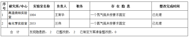 本阶段,学院实验室安全管理工作组各专项安全小组按实验室安全技术规范文件——教育部《高等学校实验室安全检查项目表(2019)》要求,对我院实验室进行了安全检查和隐患督促整改。详情如下: