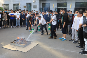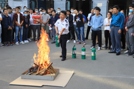 物理学院2020级研究生全体新生和新入职教工参加了培训讲座。讲座结束后,进行了疏散逃生和消防培训演练,格致楼全体师生同时参与。活动采用“演习烟雾发生器”模拟火灾烟雾场面,师生在消防警报和演习烟雾环境中,按照格致楼预定疏散路线及逃生防护要求迅速有序撤离。安全警报解除后,在格致楼外广场,王成康教官就灭火器的使用进行了讲解和培训,学生使用灭火器对演习火堆进行了现场灭火操作。