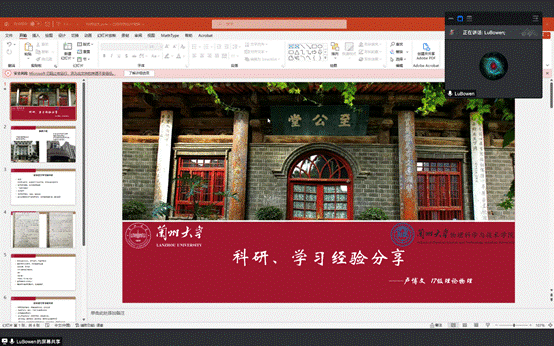 本次活动邀请了2021届毕业生卢博文同学为与会同学分享了科研学术的相关经验,并为学弟学妹们提出了学习建议,就包括如何学习专业知识,如何积累科研经验以及建议同学尽早接触科研、勇于试错等方面进行了翔实丰富的论述。并在会议主体部分即经验分享部分结束以后与提问同学进行交流。