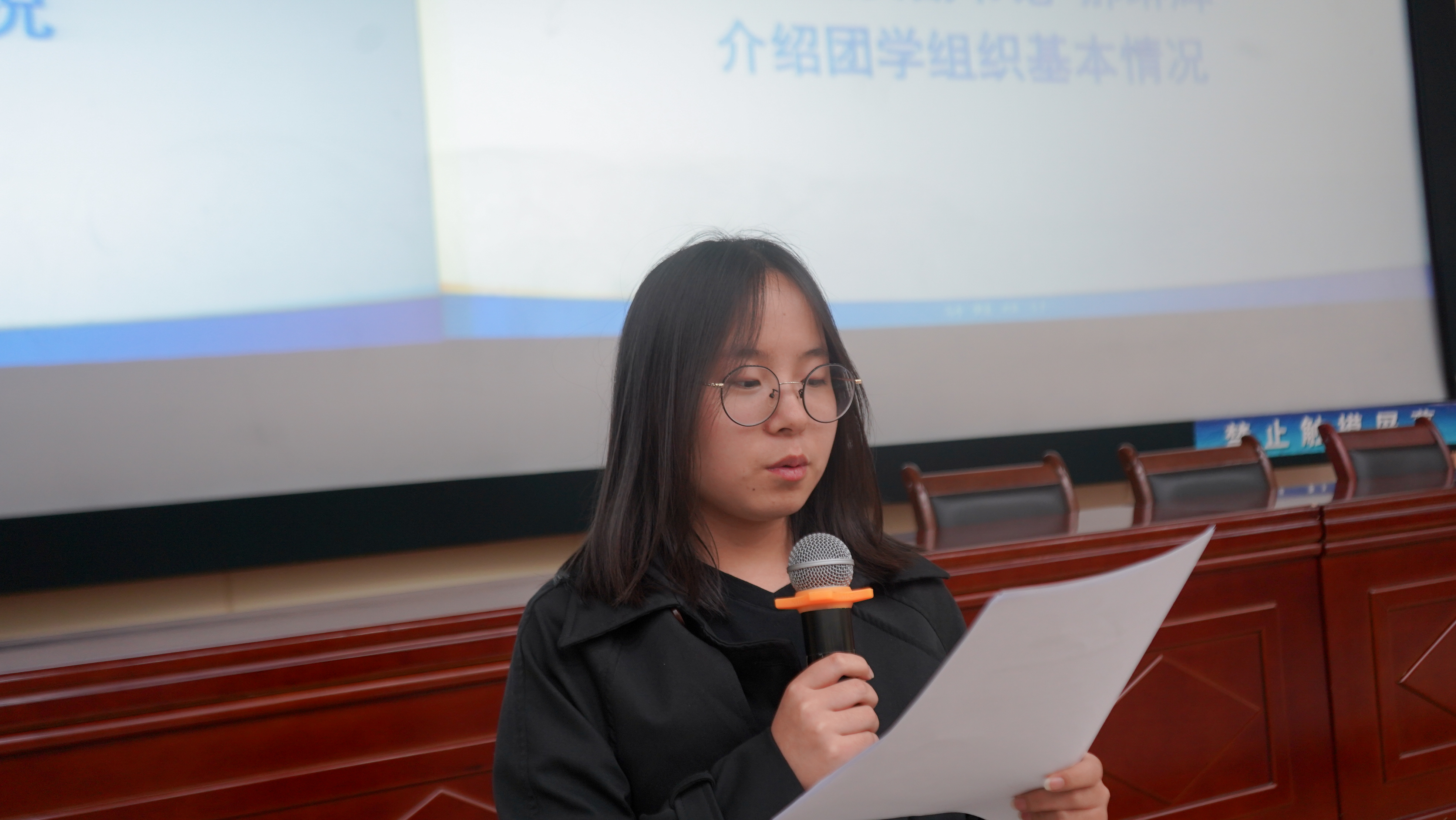 学生团委副书记郝琳辉向新生介绍团学组织基本情况,并结合自身经历分享了参与团学组织的收获及意义,使同学们对团学组织有了基本的认识。