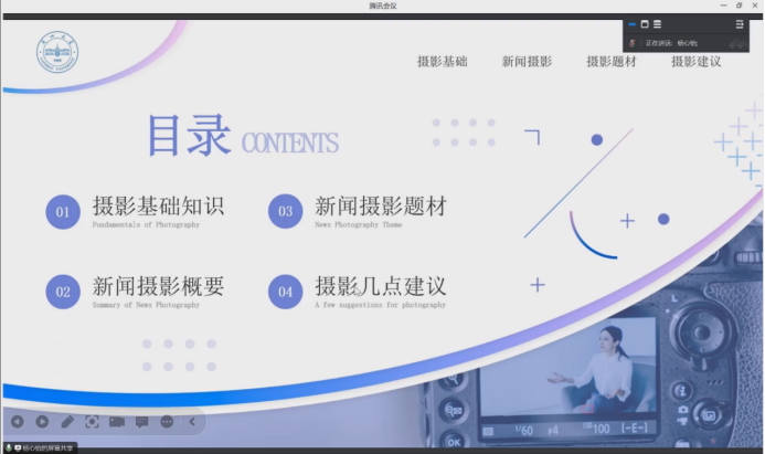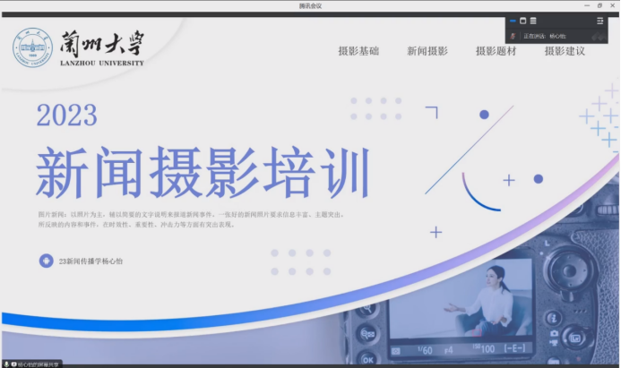 培训内容涵盖了新闻摄影、人物采访与新闻写作等多个方面。在摄影方面,杨心怡同学深入浅出地介绍了相机的基本知识和进阶用法,并结合自身专业与对摄影的热爱分享了在不同场景下的摄影技巧。