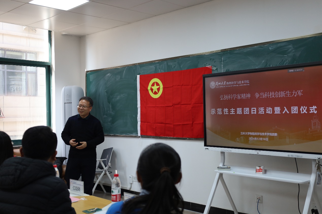 12月17日下午,物理学院研究生团支部在城关校区西区格致楼学院院史馆、段一士学术讨论室开展了主题为“弘扬科学家精神,争当科技创新生力军”的主题团日活动。校团委创新发展与实践中心主任田贯辉老师出席本次活动,任继荣副教授受邀做主题报告,学院团委书记张晓晓、副书记樊金雷、本科生、研究生团支部团员代表及2024 年下半年新发展团员代表参加了活动。